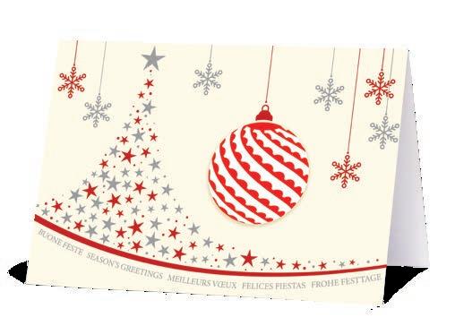 Biglietto in cartoncino FSC patinato bianco con stampa a 4 colori, per un augurio di buone feste semplice ma d’effetto.