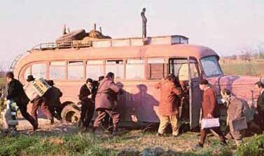 U kultnom filmu “Ko to tamo peva “putnici se voze rasklimanim autobusom prema Beogradu, puni iluzija, sitnih interesa i međusobnih svađa, dok se oko njih nadvija istorijska oluja. Svi misle da znaju kuda idu. Niko zapravo ne kontroliše put. A vozač? On samo dodaje gas.