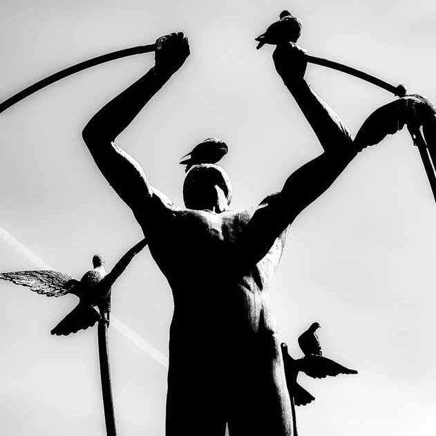 Tetura se pijanac ulicom i tako dođe do stuba za oglase. Zastane, pipa rukama stub, zatim krene da obilazi oko njega. Nakon nekoliko napravljenih krugova oko stuba,