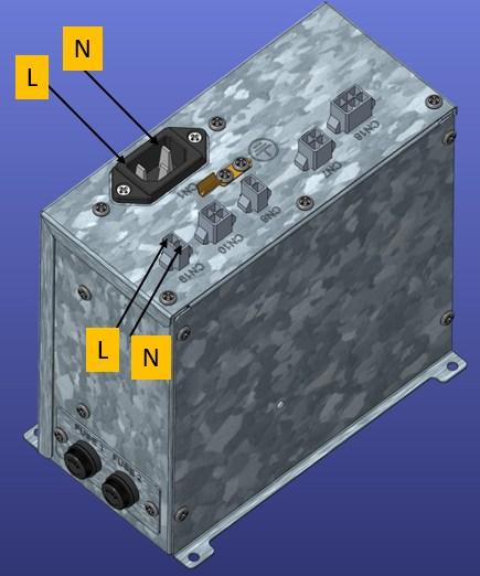 • Oikosulkusuojattu AC-moottorilähtö (lasiputkisulake 2A, F), varalla 2 kpl 2A sulakkeita