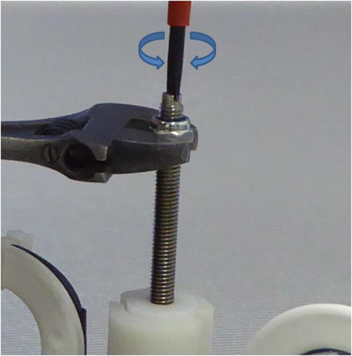 Avautumasäätö tapahtuu pitämällä mutterista kiinni ja kääntämällä kierrekaran päässä olevasta hahlosta ruuvimeisselillä.