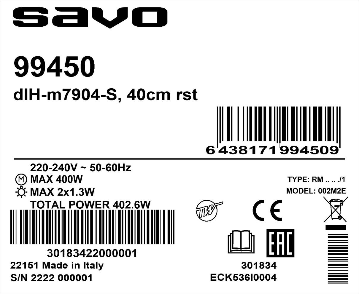 Jos otat yhteyttä Savon asiakaspalveluun, katsothan sitä ennen liesikuvun tyypin ja valmistuspäivämäärän nopeamman ja sujuvamman asiakaspalvelun mahdollistamiseksi. Nämä tiedot löytyvät liesikuvun sisäpinnalta, rasvasuodattimen takaa.