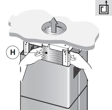 Yhdistä liesituuletin hormiin vähintään Ø 125 mm putkella. Suositeltava hormikoko on Ø 160 mm. Jos kyseessä on ulkoisella huippuimurilla varustettu järjestelmä, on hyvä noudattaa huippuimurin valmistajan ilmoittamaa hormin Ø -mittaa. Liesituulettimen poistohormin pitäisi olla mahdollisimman lyhyt ja suora. Liesituulettimen mukana tulee 150 mm (ulkohalkaisija) suora lähtölaippa, sekä 150/120mm sovituslaippa.