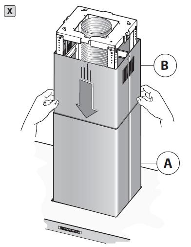 • Ota rungon yläosa B (kuva 4) ja käännä runko-osaa kunnes se on ruuvien osalta kohdallaan ja kiinnitä puuttuva neljäs ruuvi (X) ja kiristä lopuksi kaikki neljä ruuvia. Yläosa on nyt tukevasti kiinni katossa.