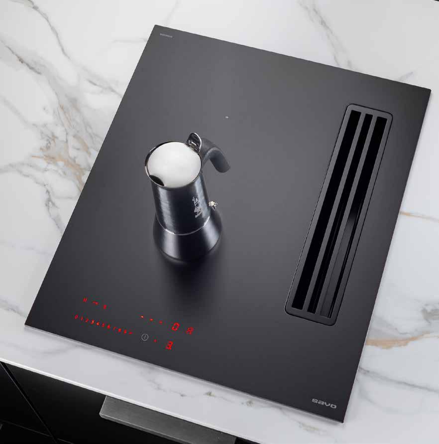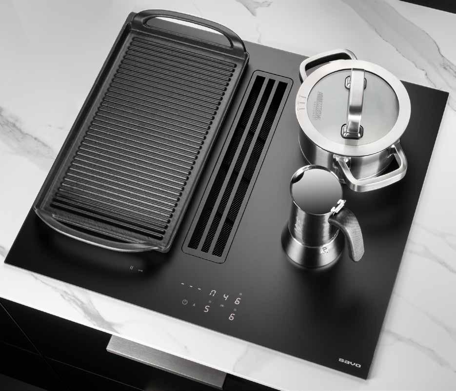 Savo Nero 80 soveltuu suuremmankin perheen ruoanlaittoon. Se on tyylikäs keittiön keskipiste. Hiljainen ja tehokas tasoliesituuletin pitää keittiön ilman raikkaana.