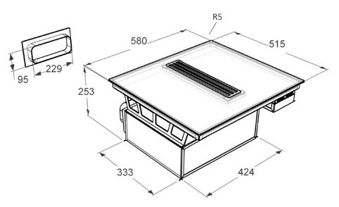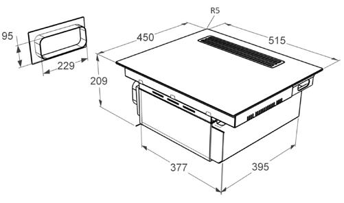 • asennusaukon koko 430 x 480 mm