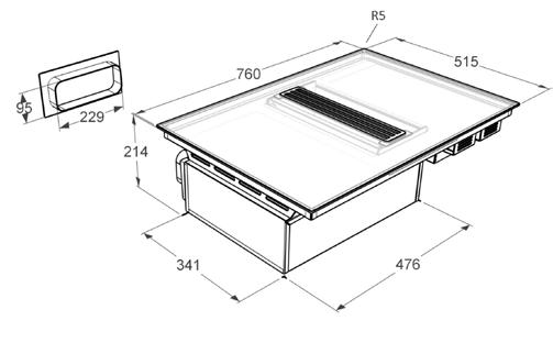 • asennusaukon koko 550 x 480 mm