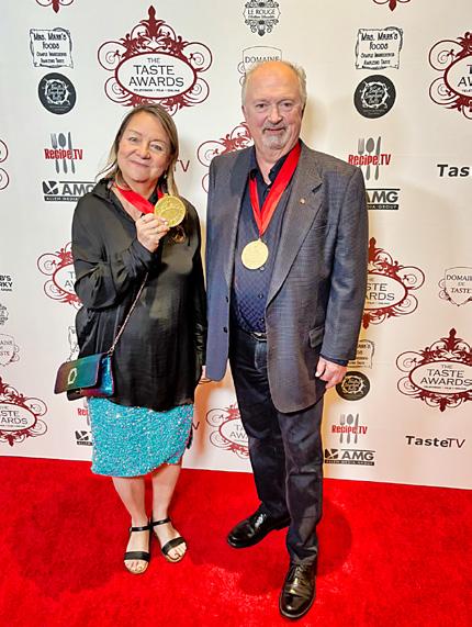 Former Calgary food critic John Gilchrist and Wendy Hill-Tout with their awards at the Taste Awards in Hollywood