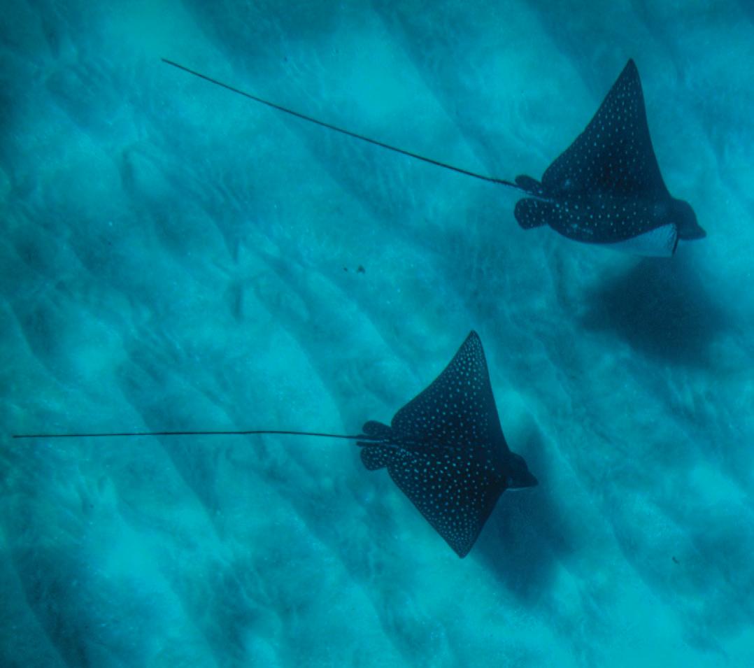 Spotted eagle rays are known to jump out of the water, occasionally doing cartwheels. When giving birth, the female spotted eagle ray jumps out of the water and expels the babies mid-air! Keep your eyes peeled for these elegant sea creatures on your snorkel or diving adventures. Your next boat adventure may include a truly unbelievable fish tale if you happen to catch one of these graceful creatures flying out of the water.