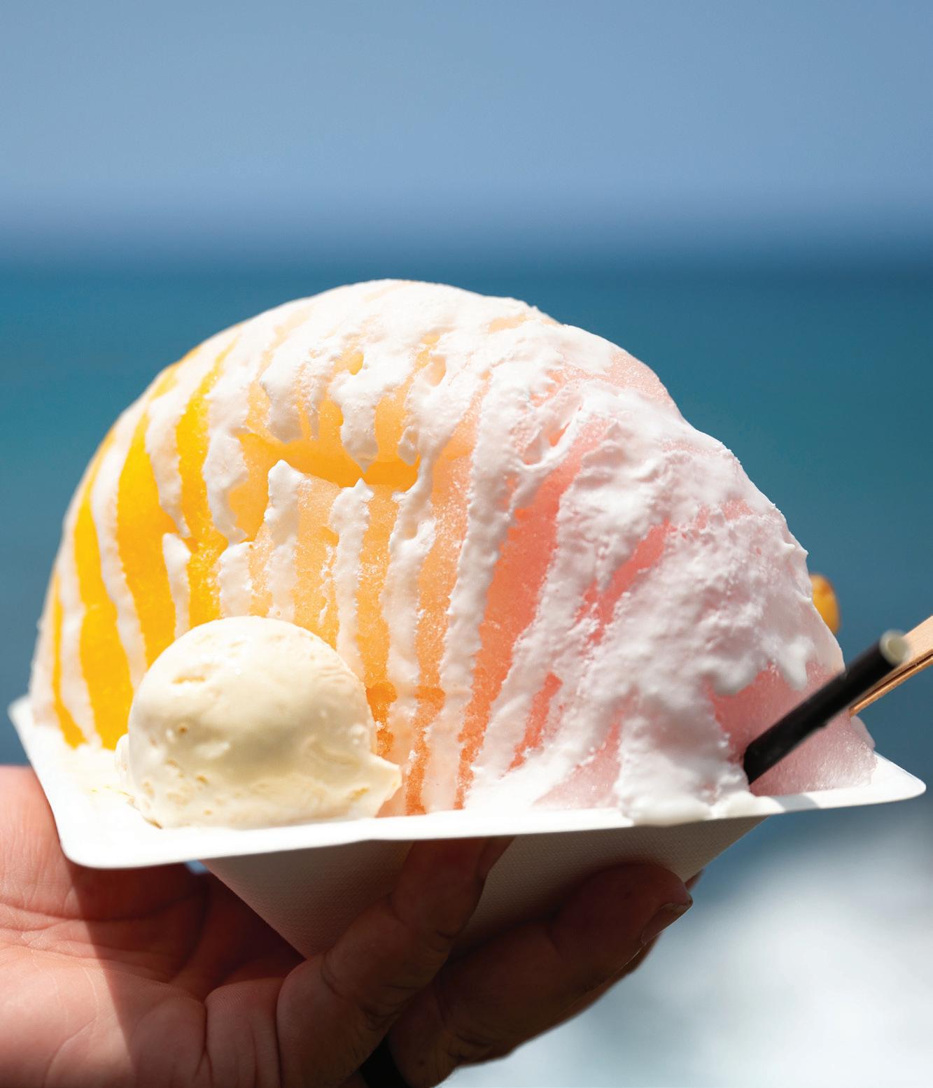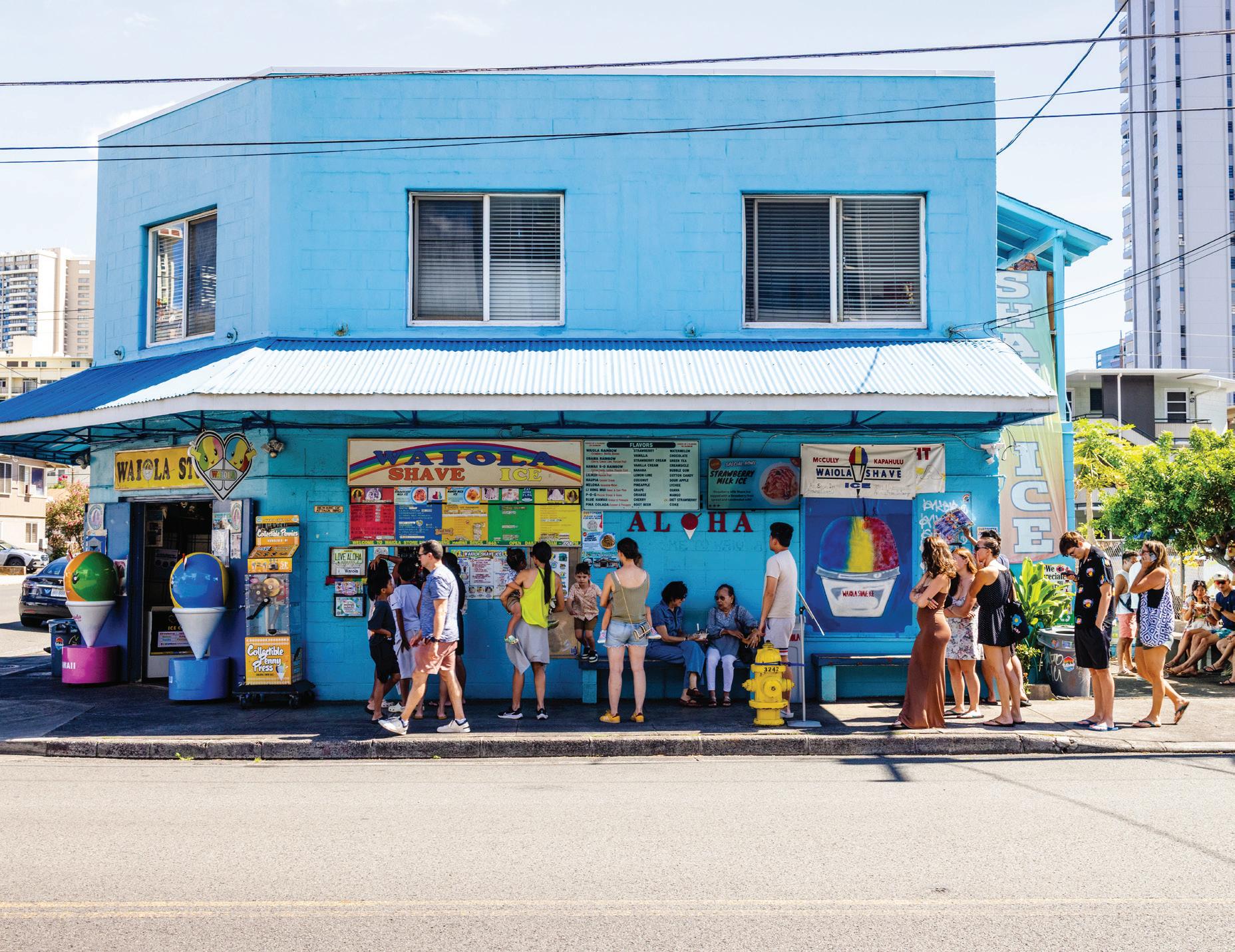 The neighboring town is the sleepy surf area of Hale‘iwa, which is sprinkled with local coffee shops, art galleries, surf shops and food trucks. One muststop along the way is at Hale‘iwa Store Lots, home to Matsumoto’s Shave Ice.