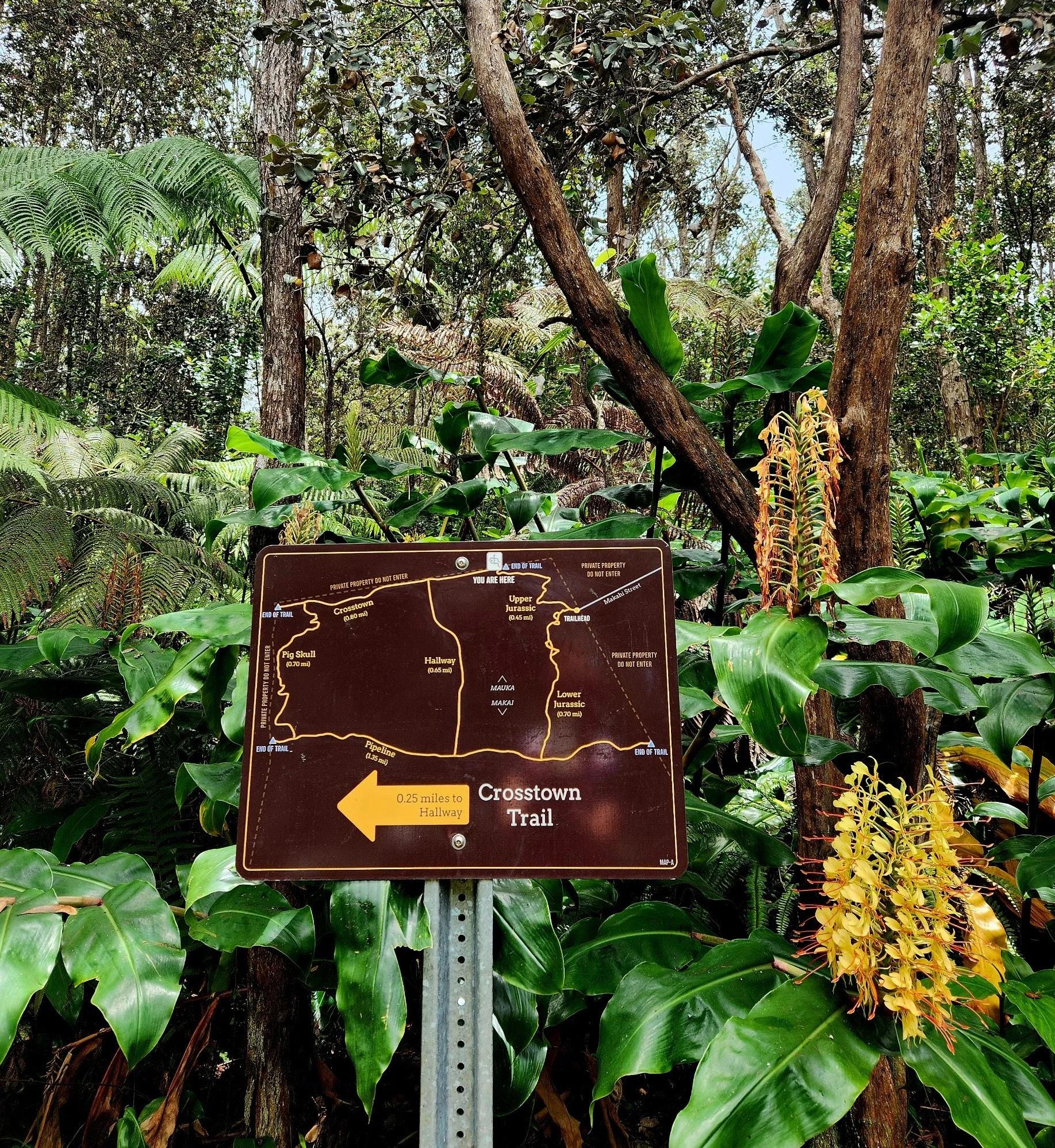 If you have the time to challenge yourself by hiking an entire four-mile loop, start at the trailhead and take Lower Jurassic, turning right on Pipeline, climbing up the Pig Skull Trail, and turning right on Crosstown before beginning your final descent down Upper Jurassic. No matter which loops you choose, keep an eye out for the ‘elepaio (Hawaiian flycatcher), which can be seen catching winged insects, and the ‘io