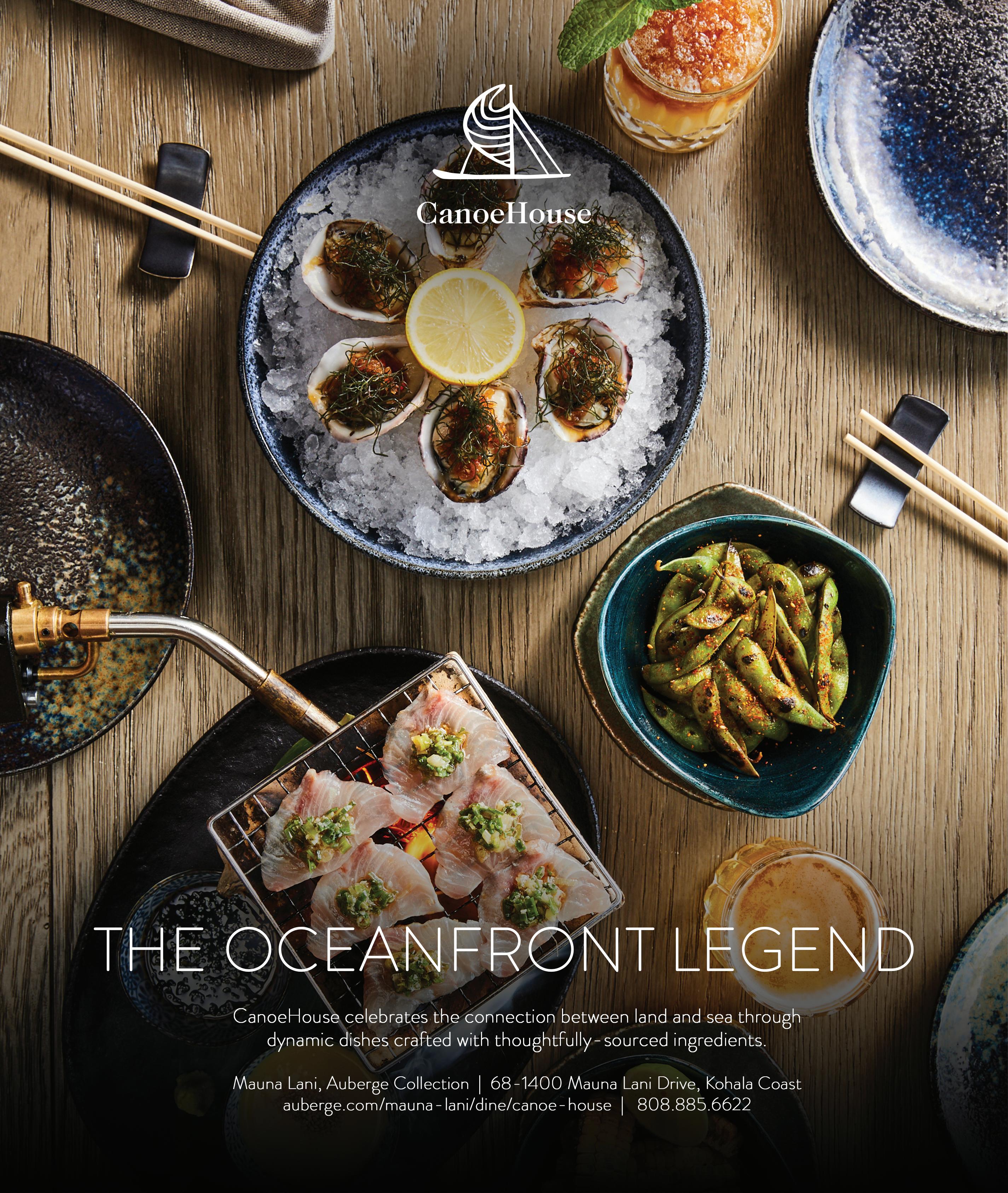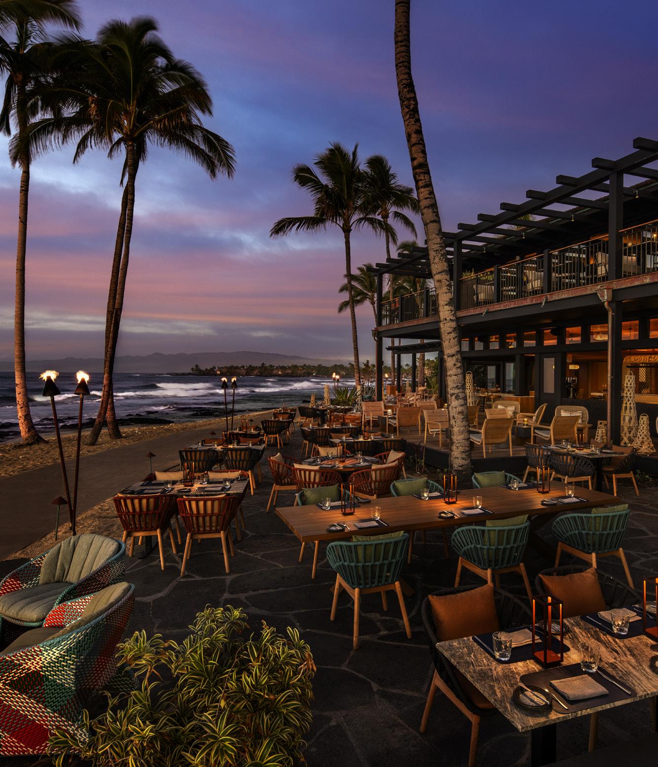 Overlooking Kauna‘oa Bay, Manta pioneered Kohala Regional Cuisine, featuring hyper-farm-to-table ingredients harvested just steps away and prepared at peak freshness.