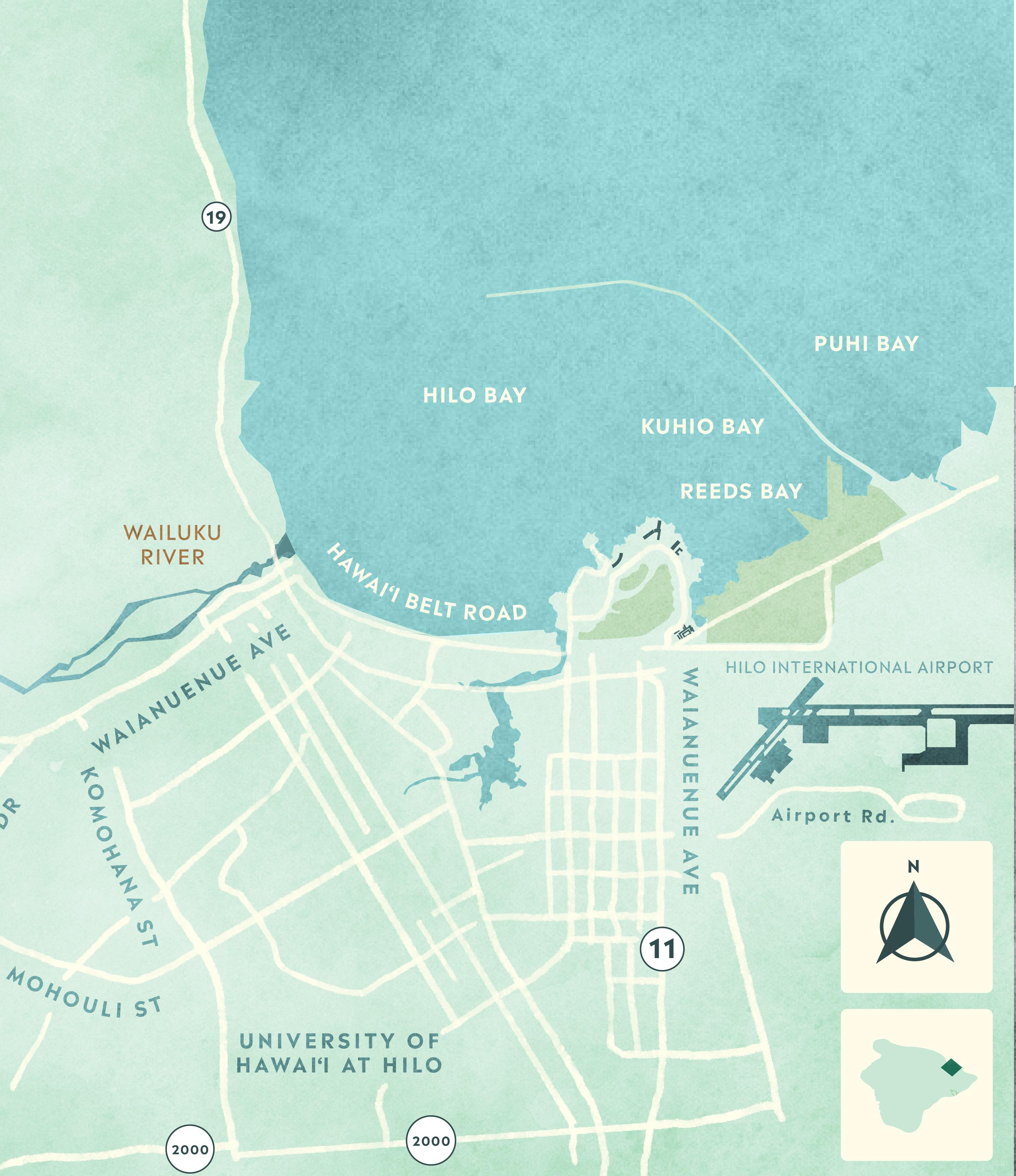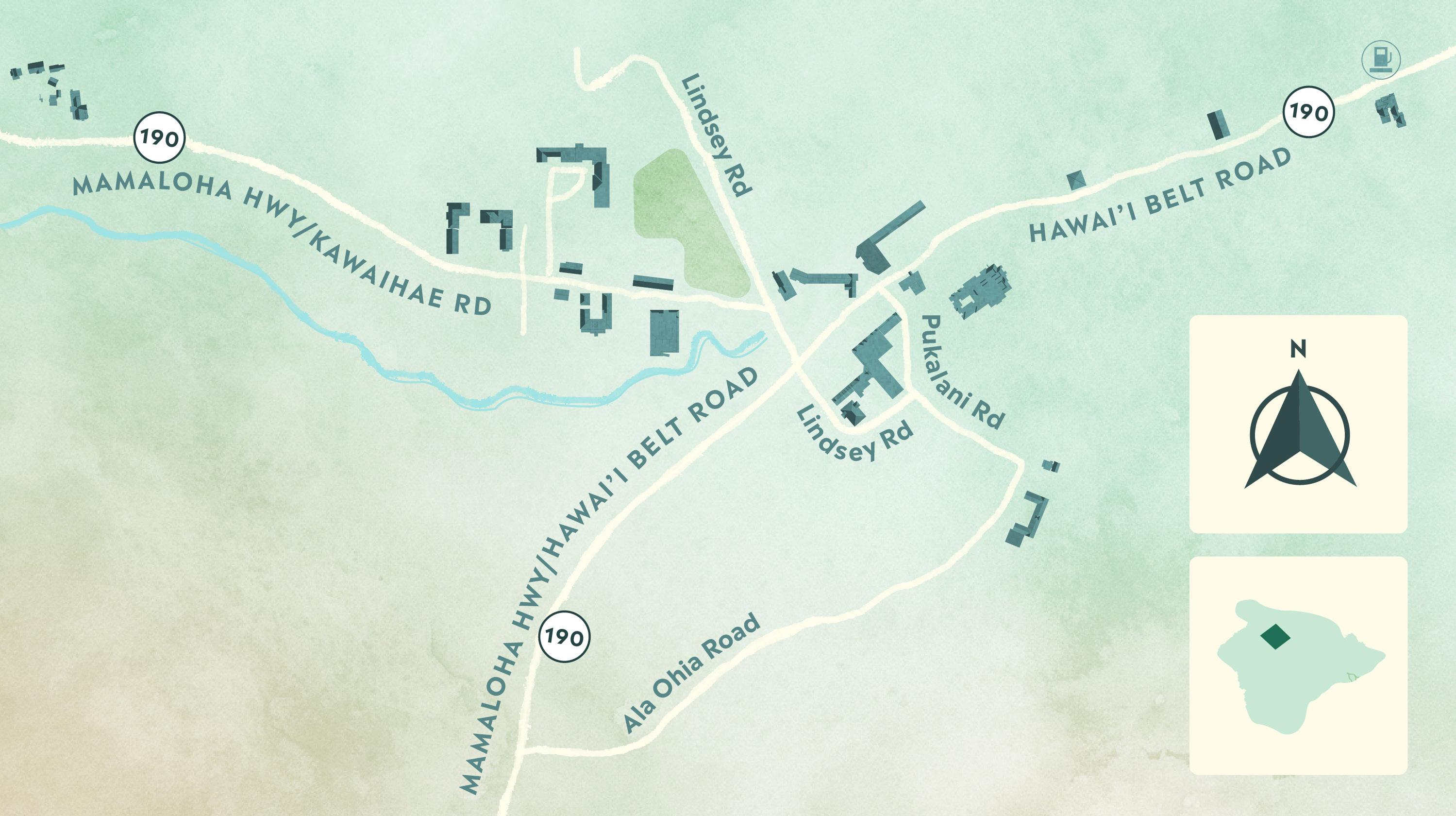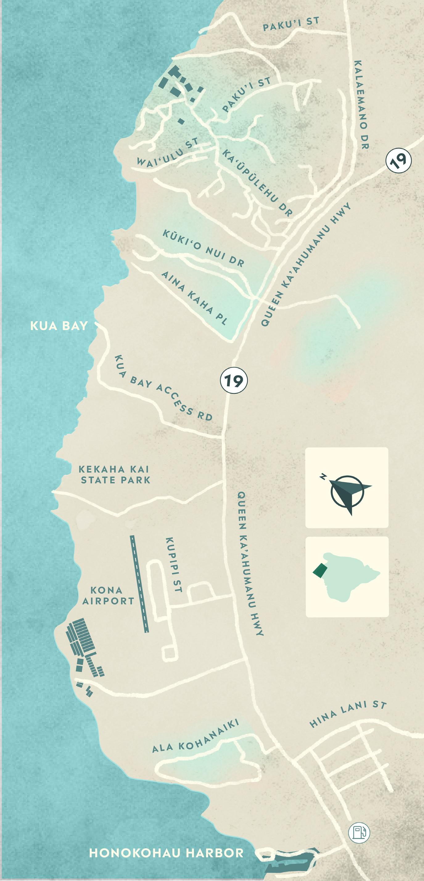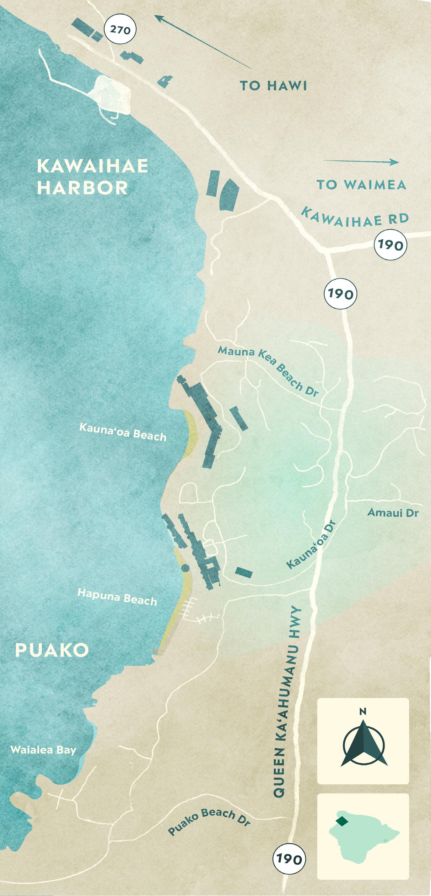 Loc ated 2 0 minutes nor th of the air por t along the scenic Kohal a Coas t