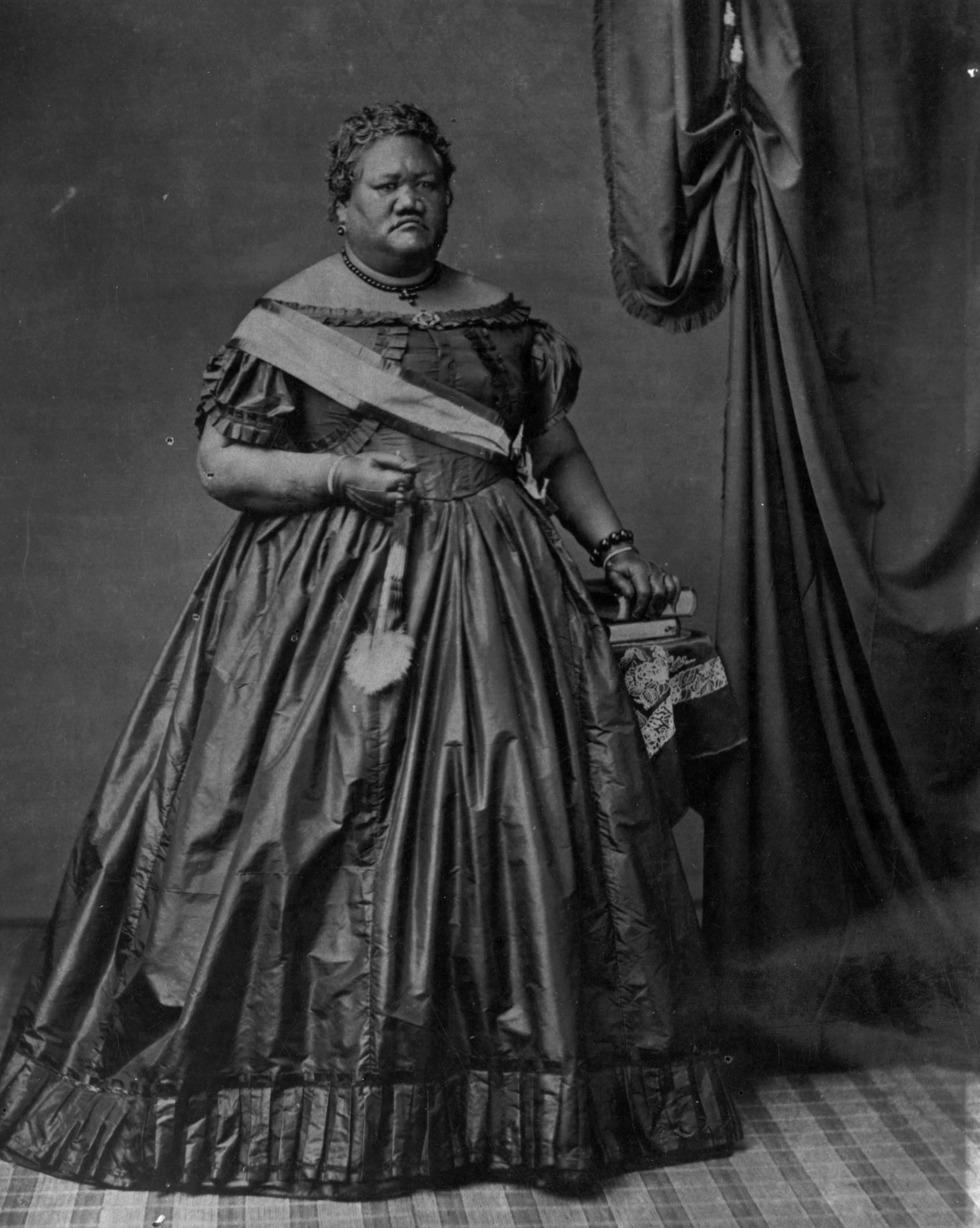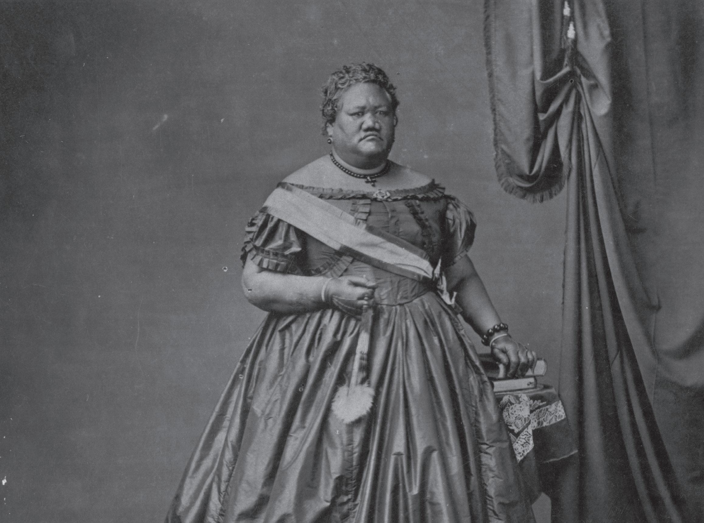 Through every joy and sorrow, victory and loss, Ke‘elikōlani remained kupa‘a (steadfast and unwavering) in her defense of traditional Hawaiian values and customs. In addition to exclusively speaking ‘Ōlelo Hawai‘i and despite having access to grand mansions and royal palaces, she chose to live in a hale pili (traditional Hawaiian grass house). While she adopted Victorian-style clothing, she rejected its ideals of beauty, which prized delicacy and fair skin. Towering at six feet tall and weighing 440 pounds, with a voice described as “the distant rumble of thunder,” Ke‘elikōlani embodied the Hawaiian ideal of beauty that celebrated strength, presence and abundance. Most importantly, she remained devoted to the worship of traditional Hawaiian gods and ‘aumakua (ancestral guardian spirits).