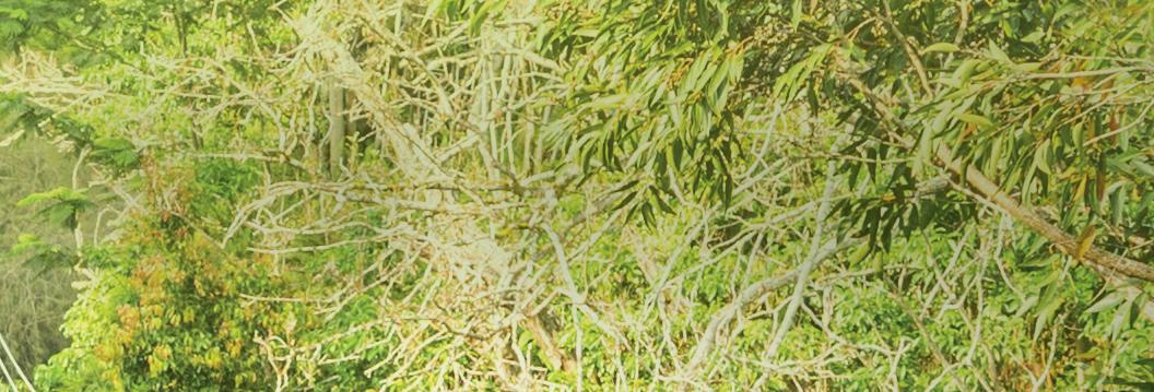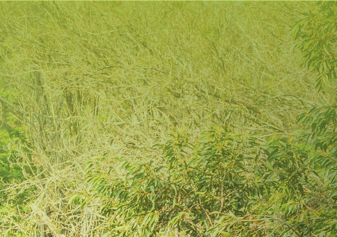 of low, misty clouds rolling in or trees that have shed their leaves. As a seasonally dry cloud forest, Makāula-‘O‘oma receives substantial moisture from low-level clouds and fog but has a distinct dry season. As a result, the forest reserve’s flora is uniquely adapted to the extreme conditions, and some plants drop their leaves during the dry season.