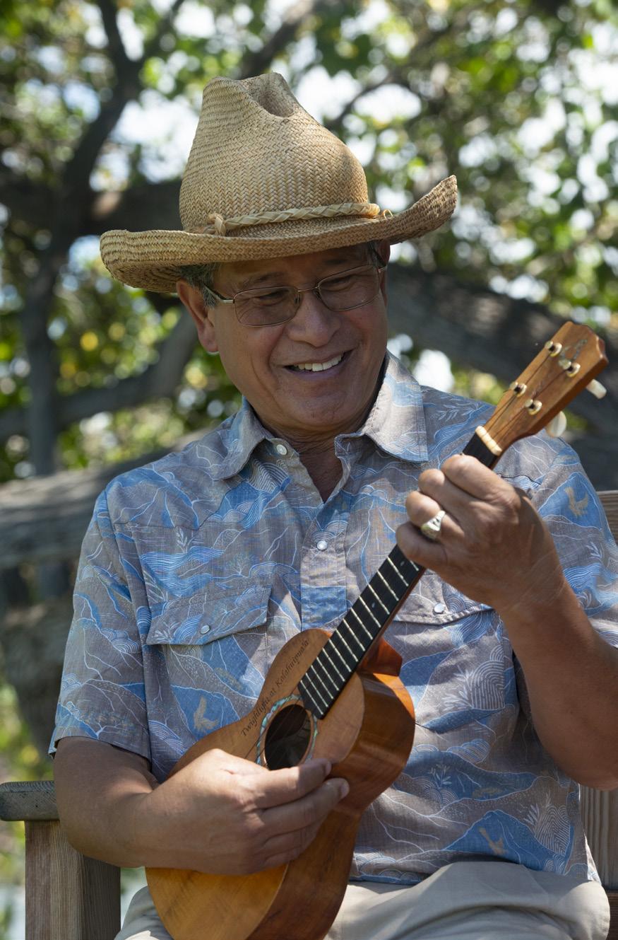 Uncle Danny Akaka’s fingers casually strum his ‘ukulele, but as he gazes at the royal fishpond behind the Eva Parker Woods Cottage, he appears to be deep in thought. A mullet jumps up from the brackish waters, bringing him back to the present to share his contemplation.