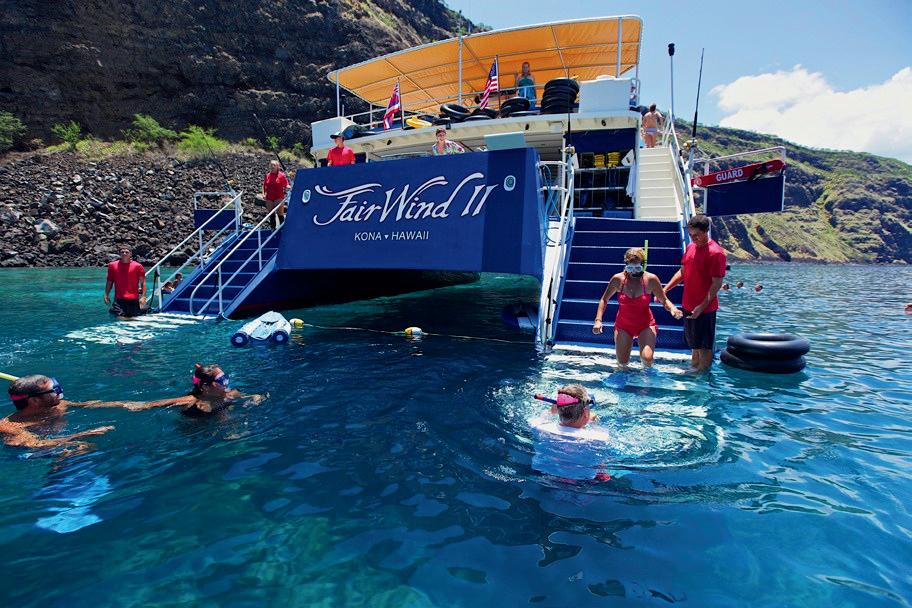 Explore the south Kona Coast and crystal-clear waters of Kealakekua Bay, home to the Captain Cook Monument. Our eco-friendly snorkel tours bring you closer to Hawai‘i’s vibrant marine life, creating unforgettable memories all while helping to protect our ocean and reefs.