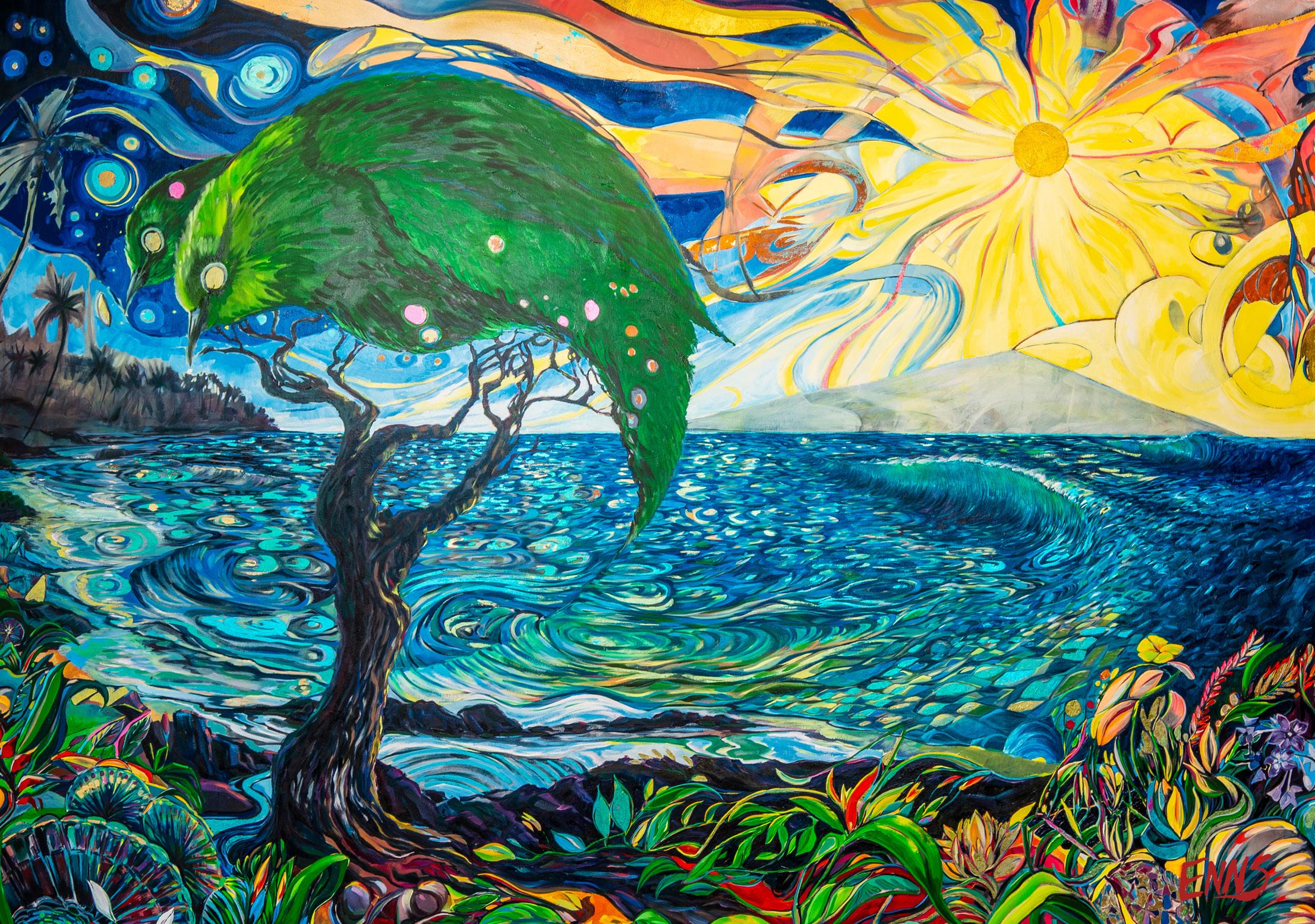 Hear the echo of the ‘i‘iwi bird’s song from the boughs and blossoms of the ‘ōhi‘a lehua tree. While the ‘ōhi‘a has been threatened by disease in recent years, the ‘i‘iwi helps maintain the tree’s resilience through its crucial role as a pollinator. As an endangered Hawaiian honeycreeper, the ‘i‘iwi relies on the ‘ōhi‘a for habitat and food. Its curved, long beak is even adapted to feed on the nectar the tree provides.
