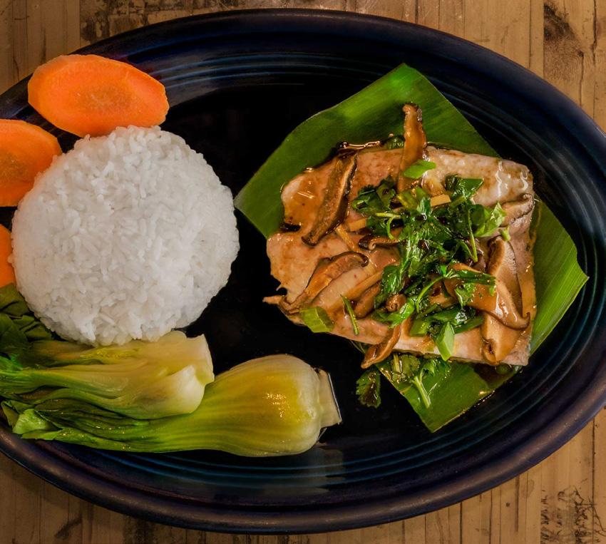 Favorite food: Ono. Ono is Hawaiian for wahoo (and ‘ono means delicious—a perfect coincidence). It’s a mild-flavored, flaky white fish that can be cooked in numerous ways and never disappoints. My husband and eight-year-old son love to fish together on our boat, and, lucky for me, I get to enjoy the fruits of their labor when they bring home a beautiful ono. My personal favorite preparation is pesto-crusted ono, but my kiddos love it when I make them ono nuggets, which are always a crowd favorite.