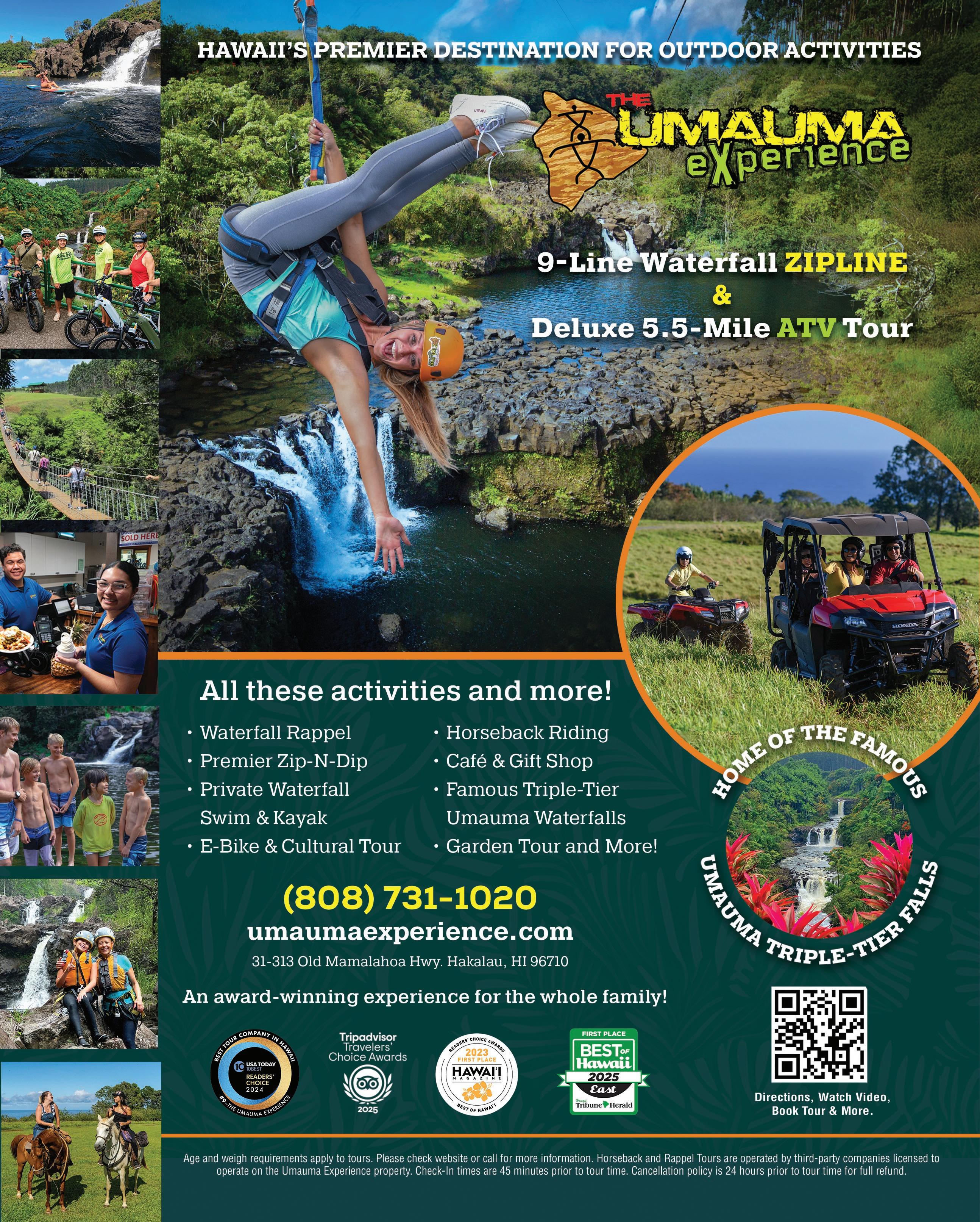 Thrill-seekers might prefer catching a big wave or soar high above the trees on a zipline over stunning waterfalls. For adventurers who prefer less adrenaline inducing activities, gently float down an old cane field irrigation ditch in a tube in Hāwī. And nature lovers can look for sightings of native birds in a peaceful forest. Whatever you’re seeking, whether its relaxation and respite on a gorgeous beach or unforgettable adventure, the Big Island is an extraordinary playground for all.