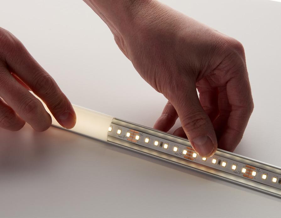 To achieve the desired brightness Orion is available in standard (60 LEDs per metre) and high (120 LEDs per metre) using highly efficient SMD LED (5050 or 2835) and COB LED with very high CRI.
