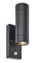 PIR - Also known as passive infrared, the sensor detects the heat energy that all living bodies give off. When a person walks in front of the fitting, the sensor detects the change in the radiation and turns on the light.