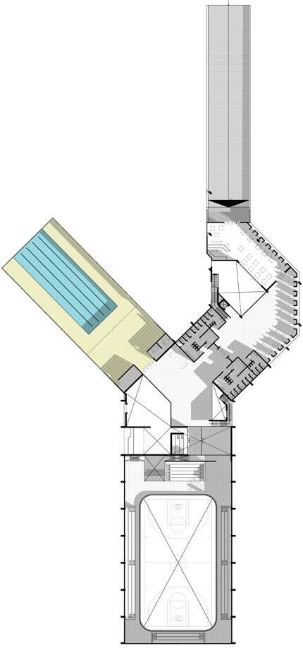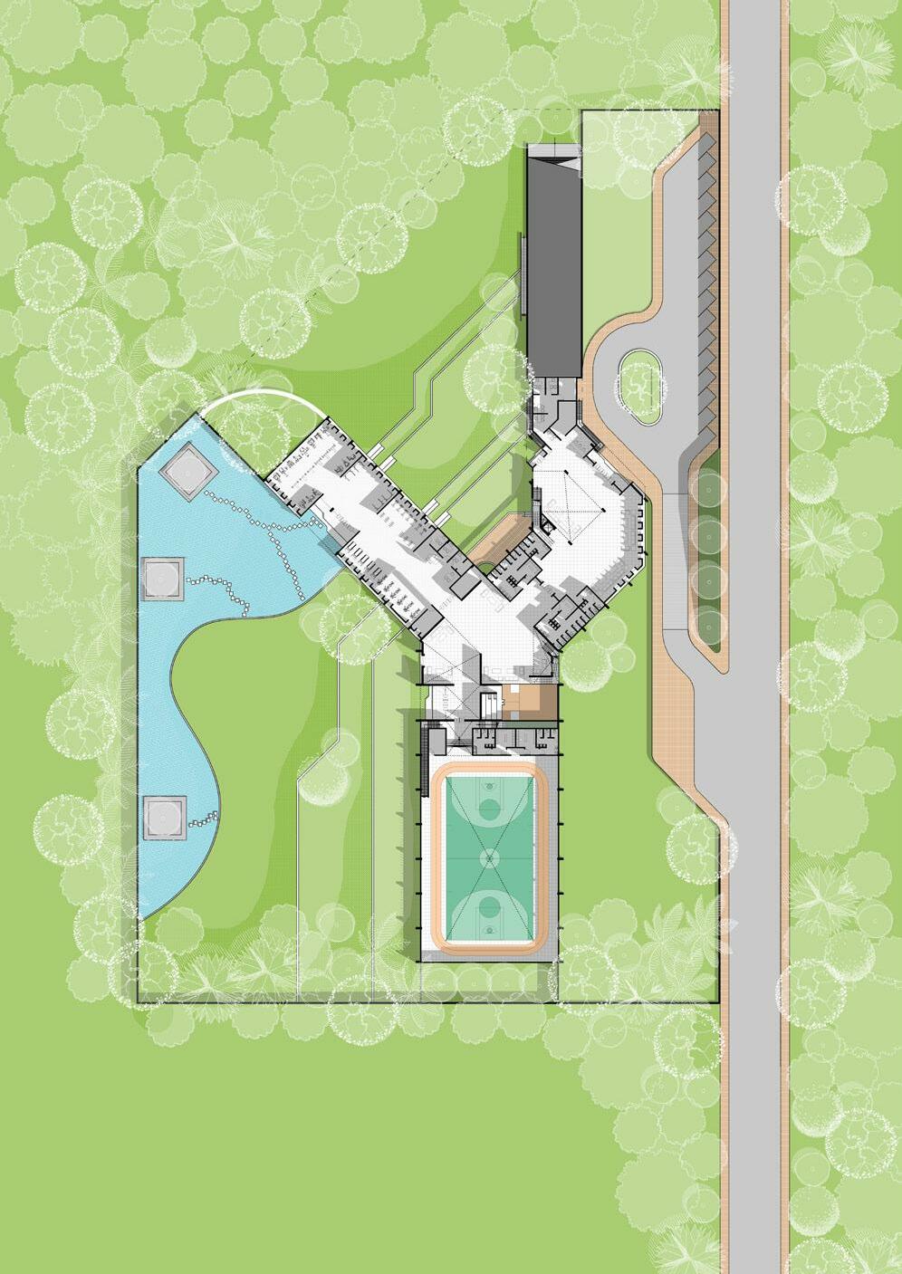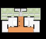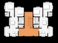 Two sets of living unit pile up on the second floor, One above the living unit of ground floor and another above the supportive function.