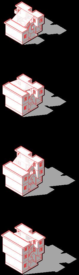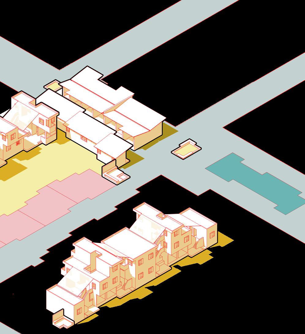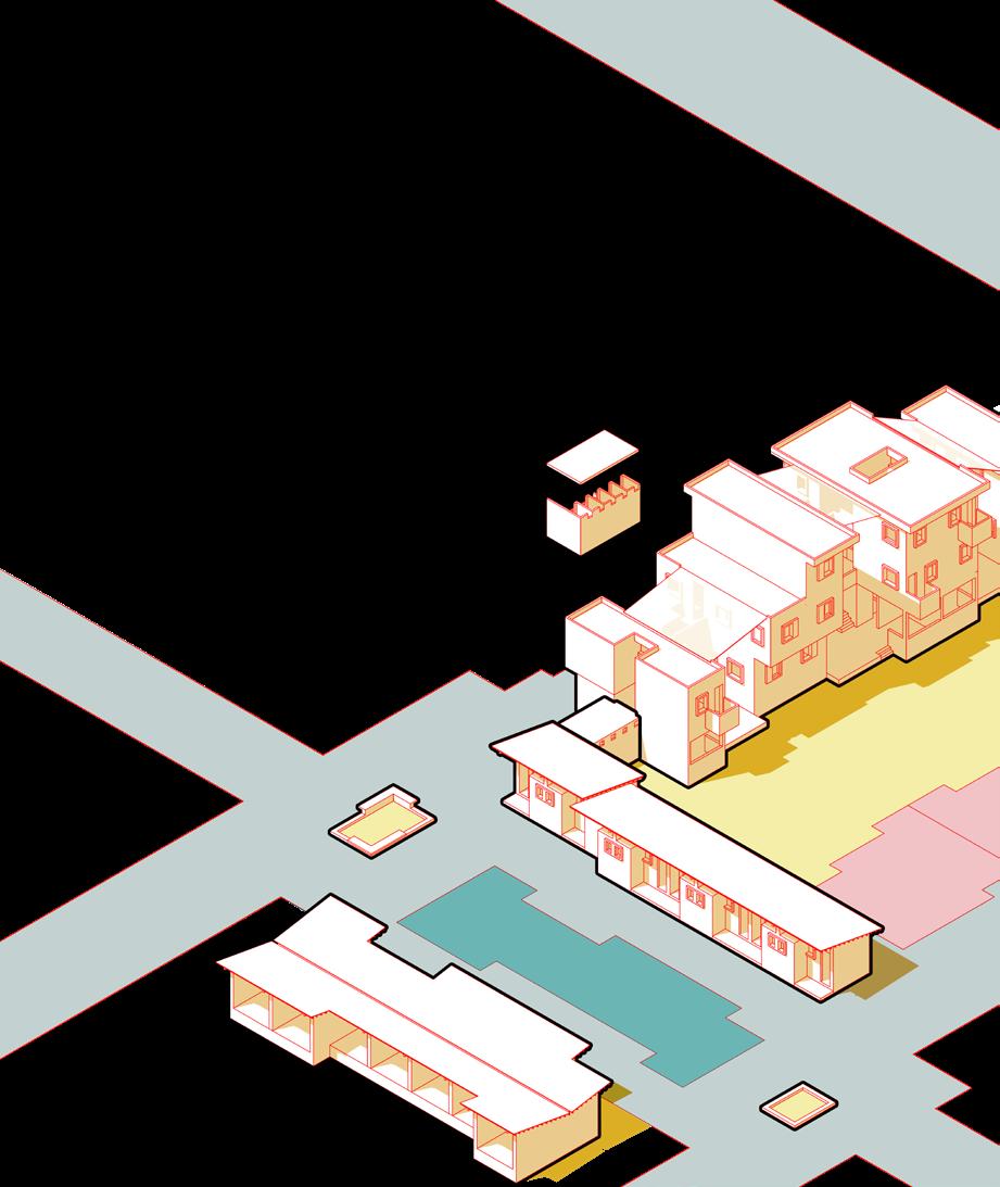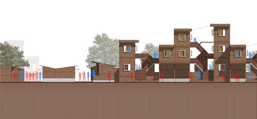 Section AA Section BB 0 5 10 ft Ground Floor Plan First Floor Plan Second Floor Plan 0 A 7 7 7 7 6 4 8 9 9 5 1 2 7 1 Entry 2 Central Space 3 Extended Kitchen 4 Kitchen 5 Shared Washroom 6 Extended Outlet Store 7 Living Unit 8 Living Unit (Owner’s) 9 Living Unit (Mother with children) 3 B B B B B B A A A 1.5 4.5 m ACADEMIC I STUDIO X I UNSOCIAL SOCIETY