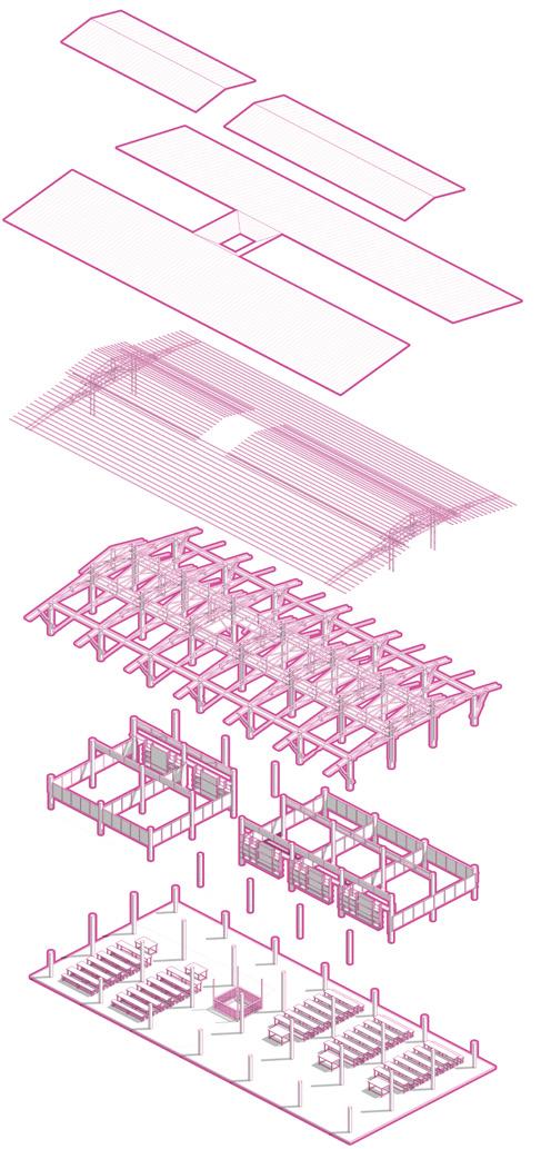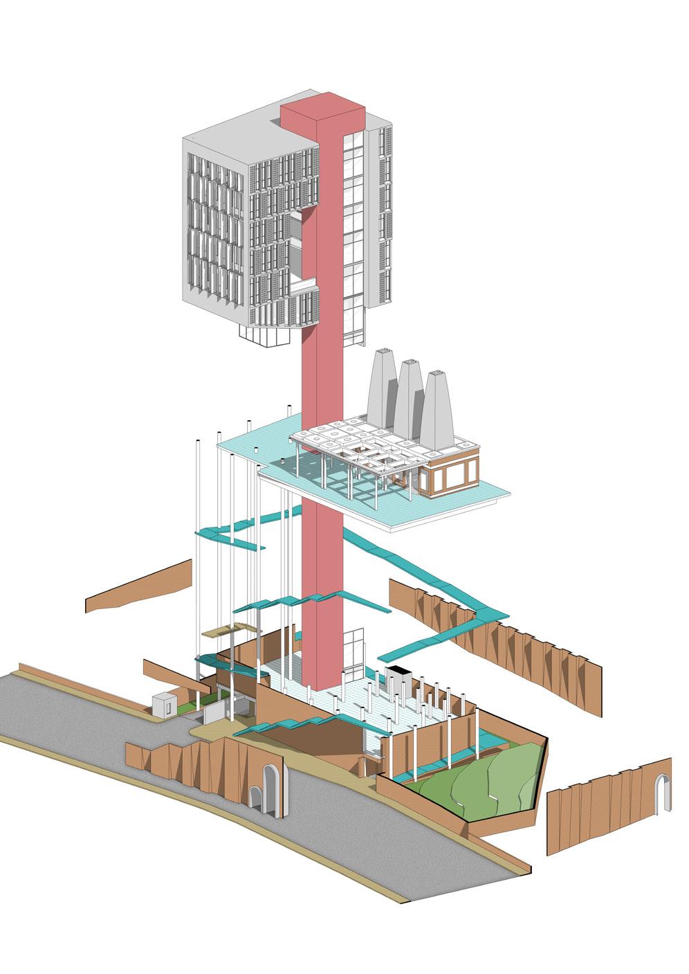 Exploded Axono of Temple Compelx