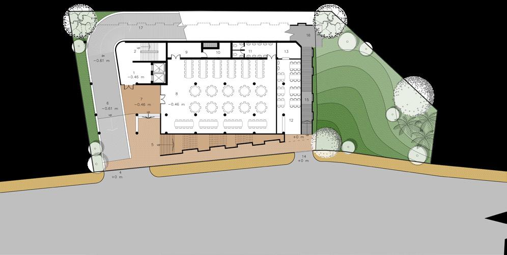 elevation 11 Entrance 01 Lift lobby 01 Lift lobby 16 Parikrama path 06 Cutting area 06 Conference room 14 Body (Dead) bath area 04 Main kitchen 04 Wash area 09 Office 09 Roof (Garbaghiha) 12 Entrance by grand stair 02 Main stair 02 Main stair 17 Stairway towards Temple Plaza 07 Cooking area 07 Class room 15 Connection with graveyard 05 Washing area 05 Temple office 10 Vojonkokhsho (primary dining) 13 Wash area 03 Lift 03 Lift 08 Dry storage 08 Roof (Natmandir) TEMPLE HISTORY CULTURE COMPETITION I SPRITUAL LANDMARK