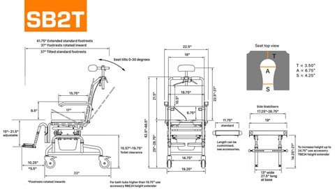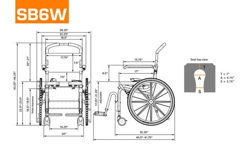 SB6C22 ShowerBuddy Bariatric Chair Dimensions