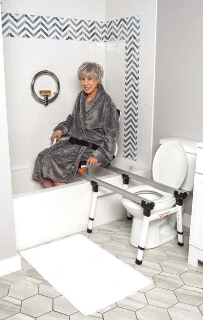 The TubBuddy with Tilt (SB2T) transfer system will turn your existing bathtub or curbed shower into an accessible bathroom in minutes. It allows you to enjoy showering again without the high cost, delay, and stress of a complete bathroom remodel. The TubBuddy SB2T alleviates heavy lifting and multiple transfers. This chair is separated into three sections; rolling base (shower chair), bridge, and tub base. The SB2T chair rolls around the house like a wheelchair allowing patients to transfer onto it easily. Once in the bathroom, the SB2T can roll over most toilets. When toileting is complete, the rolling base connects to the tub base allowing the chair to slide in a tilted position with legs raised and ready to move over the tub. Once over the tub/shower, the rolling base and bridge can be disconnected and rolled away so that the shower curtain can be closed or allow a caregiver the option to get closer to the patient. A custom bridge may be required if a toilet is too close or too far from the tub. The TubBuddy with Tilt (SB2T) is a caregiver-assisted product; it is not intended for independent use. Additional accessories available.