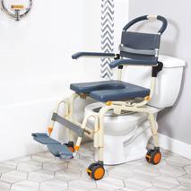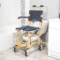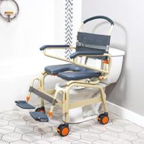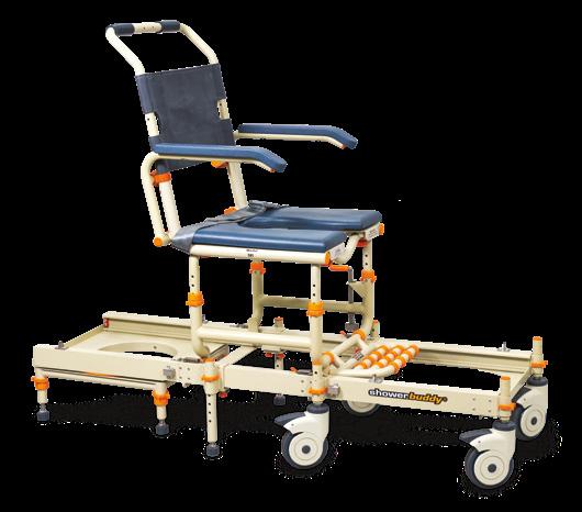 The ShowerBuddy SB1 transfer system will turn your existing bathroom into an accessible bathroom in minutes. It allows you to enjoy showering again without the excessive cost, delay, and stress of a full bathroom remodel. The SB1 alleviates heavy lifting and multiple transfers for toileting and showering. This chair is separated into three sections; rolling base (shower chair), bridge, and shower base. The rolling base rolls around the house like a wheelchair allowing patients to easily transfer and then roll right over a toilet (most toilets). Once completed with toileting the rolling base can connect to the bridge and onto the shower base allowing the chair to slide into the shower stall. Once inside the shower stall, the bridge disconnects, and the shower base can rotate 360 degrees to allow the user to face the shower controls or any other direction. ShowerBuddy (SB1) is a caregiver-assisted product; it is