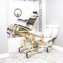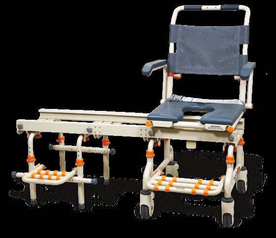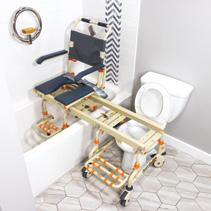 The TubBuddy with Tilt (SB2T) transfer system will turn your existing bathtub or curbed shower into an accessible bathroom in minutes. It allows you to enjoy showering again without the high cost, delay, and stress of a complete bathroom remodel. The TubBuddy SB2T alleviates heavy lifting and multiple transfers. This chair is separated into three sections; rolling base (shower chair), bridge, and tub base. The SB2T chair rolls around the house like a wheelchair allowing patients to transfer onto it easily. Once in the bathroom, the SB2T can roll over most toilets. When toileting is complete, the rolling base connects to the tub base allowing the chair to slide in a tilted position with legs raised and ready to move over the tub. Once over the tub/shower, the rolling base and bridge can be disconnected and rolled away so that the shower curtain can be closed or allow a caregiver the option to get closer to the patient. A custom bridge may be required if a toilet is too close or too far from the tub. The TubBuddy with Tilt (SB2T) is a caregiver-assisted product; it is not intended for independent use. Additional accessories available.