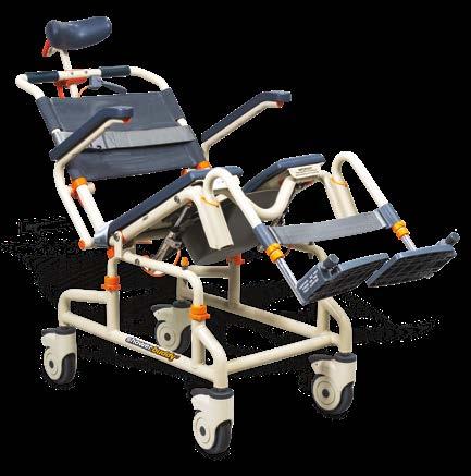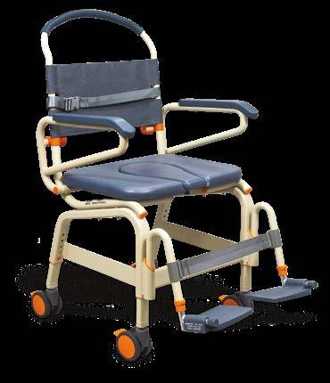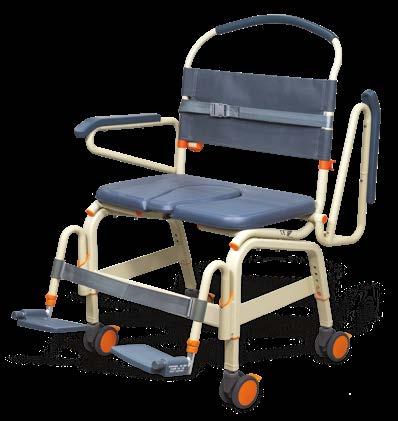 The Showerbuddy SB3T rolling shower chair is designed for a curb-less/ accessible or roll-in shower stall. The SB3T rolls over most toilets for use as a commode and offers a tilt position that releases pressure for the user and improves comfort. The chair includes a standard front opening cushion, headrest, swing away and removable footrests, flip back and removable armrests, 4” lockable casters, removable commode, seat belt, and height adjustability. ShowerBuddy (SB3T) is a caregiver-assisted product; it is not