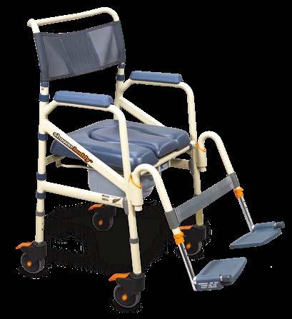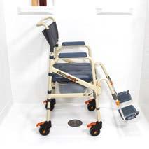 The ShowerBuddy Bariatric Shower Chair (SB6C-22) (SB6C-26) are designed for curb-less/accessible or roll-in showers. These chairs are intended for bariatric use and can accommodate patients up to 440 lbs. The seat width ranges between 22” and 26". Both chairs can roll over most toilets to be used as a commode. The chairs come standard with a front opening cushion, swing away and removable footrests, a clip-on calf strap, lockable flip-back armrests, a commode bucket with lid, pee guard, chest belt, and is height adjustable. These ShowerBuddy Bariatric Shower Chairs are caregiver-assisted products; they are not intended for independent use.