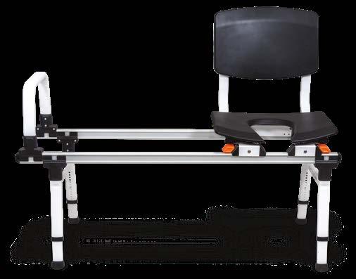 ShowerGlyde Model SG1 is a revolutionary sliding transfer bench. It is designed to fit in environments where there are no obstructions adjacent to the tub (i.e. vanity, toilet). SG1 slides easily over the tub and locks in two points; on the inside and outside of the tub. This allows for safe transfers while using the bench. SG1 can be assembled as a left or right-hand unit. One grab bar installed at the wall side of the rails is included as an aid for sliding. The user can pull or push themselves easily along the rails. SG1 is height adjustable permitting clearance of up to a 19.5" tub height. Optional extension legs are available for taller tubs (up to 25" high). Model SG1 also includes a Seat Belt, a Grab Bar, and a Commode Seat with 3 options; an open Commode Seat for easy washing, a Reducer Ring to reduce the size of the commode opening, and a Solid Seat Insert to close the commode opening completely Weight capacity is 330lb.
