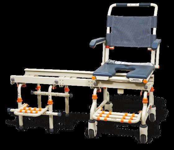 The ShowerBuddy SB1 transfer system will turn your existing bathroom into an accessible bathroom in minutes. It allows you to enjoy showering again without the excessive cost, delay, and stress of a full bathroom remodel. The SB1 alleviates heavy lifting and multiple transfers for toileting and showering. This chair is separated into three sections; rolling base (shower chair), bridge, and shower base. The rolling base rolls around the house like a wheelchair allowing patients to easily transfer and then roll right over a toilet (most toilets). Once completed with toileting the rolling base can connect to the bridge and onto the shower base allowing the chair to slide into the shower stall. Once inside the shower stall, the bridge disconnects, and the shower base can rotate 360 degrees to allow the user to face the shower controls or any other direction. ShowerBuddy (SB1) is a caregiver-assisted product; it is