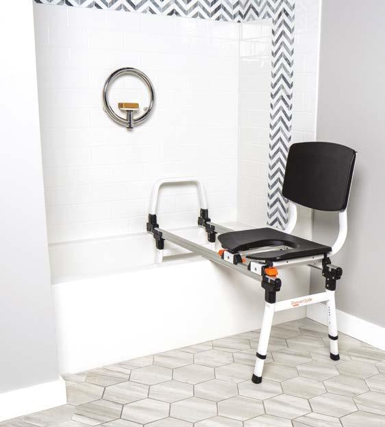 The ShowerGlyde range is designed for individuals experiencing difficulty getting into and out of a tub or shower. Three models are available depending on the layout of your bathroom. Multiple seat options, a Seat Belt, and a Grab Bar are included with every model.
