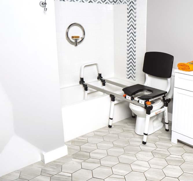 The TubBuddy with Tilt (SB2T) transfer system will turn your existing bathtub or curbed shower into an accessible bathroom in minutes. It allows you to enjoy showering again without the high cost, delay, and stress of a complete bathroom remodel. The TubBuddy SB2T alleviates heavy lifting and multiple transfers. This chair is separated into three sections; rolling base (shower chair), bridge, and tub base. The SB2T chair rolls around the house like a wheelchair allowing patients to transfer onto it easily. Once in the bathroom, the SB2T can roll over most toilets. When toileting is complete, the rolling base connects to the tub base allowing the chair to slide in a tilted position with legs raised and ready to move over the tub. Once over the tub/shower, the rolling base and bridge can be disconnected and rolled away so that the shower curtain can be closed or allow a caregiver the option to get closer to the patient. A custom bridge may be required if a toilet is too close or too far from the tub. The TubBuddy with Tilt (SB2T) is a caregiver-assisted product; it is not intended for independent use. Additional accessories available.