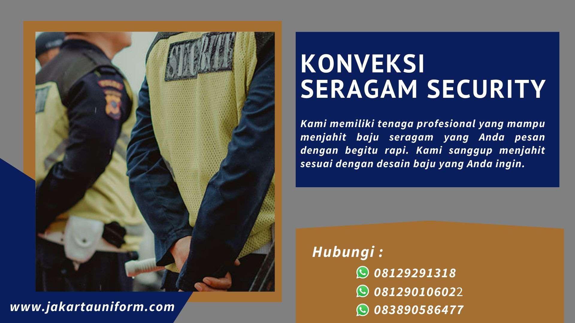 Jasa konveksi seragam security terbaik kami menawarkan solusi lengkap untuk kebutuhan seragam security Anda. Dengan pengalaman dan keahlian dalam bidang ini, kami siap memberikan seragam yang tangguh, fungsional, dan tahan lama. Dengan fokus pada detail dan kualitas material, kami memberikan seragam security yang nyaman dipakai sepanjang hari. Percayakan kepada kami untuk mendapatkan seragam security terbaik yang tidak hanya memenuhi standar keselamatan, tetapi juga tampil menarik dan profesional.