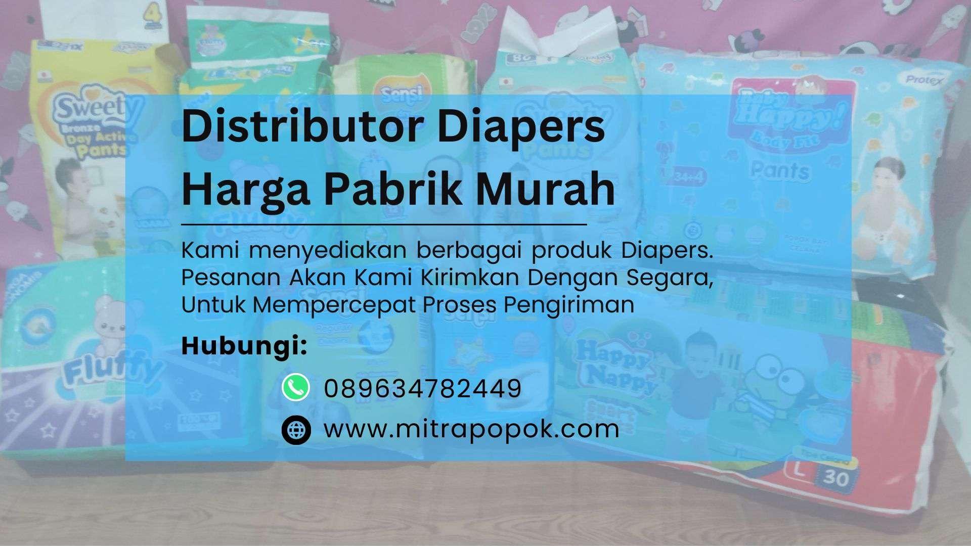 Kami adalah distributor besar Diapers yang menjual produk berkualitas harga murah. Kami Cocok Untuk Pembelian Pribadi Atau Untuk Anda Yang Ingin Membangun Bisnis Hubungi Kami Jika ada pertanyaan terkait produk dan cara pemesanan silahkan hubungi kami via kontak tersedia.Hubungi TLP/WA 089634782449 Distributor Diapers Harga Pabrik Murah.