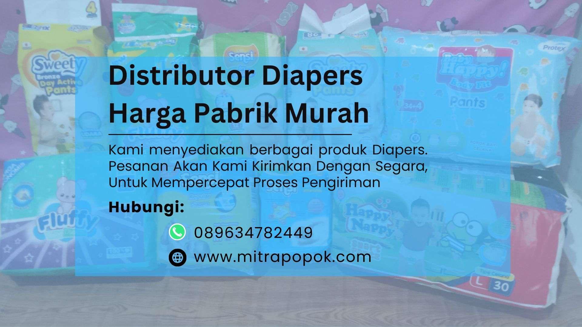 Kami adalah distributor besar Diapers yang menjual produk berkualitas harga murah. Kami Cocok Untuk Pembelian Pribadi Atau Untuk Anda Yang Ingin Membangun Bisnis Hubungi Kami Jika ada pertanyaan terkait produk dan cara pemesanan silahkan hubungi kami via kontak tersedia.Hubungi TLP/WA 089634782449 Distributor Diapers Harga Pabrik Murah
