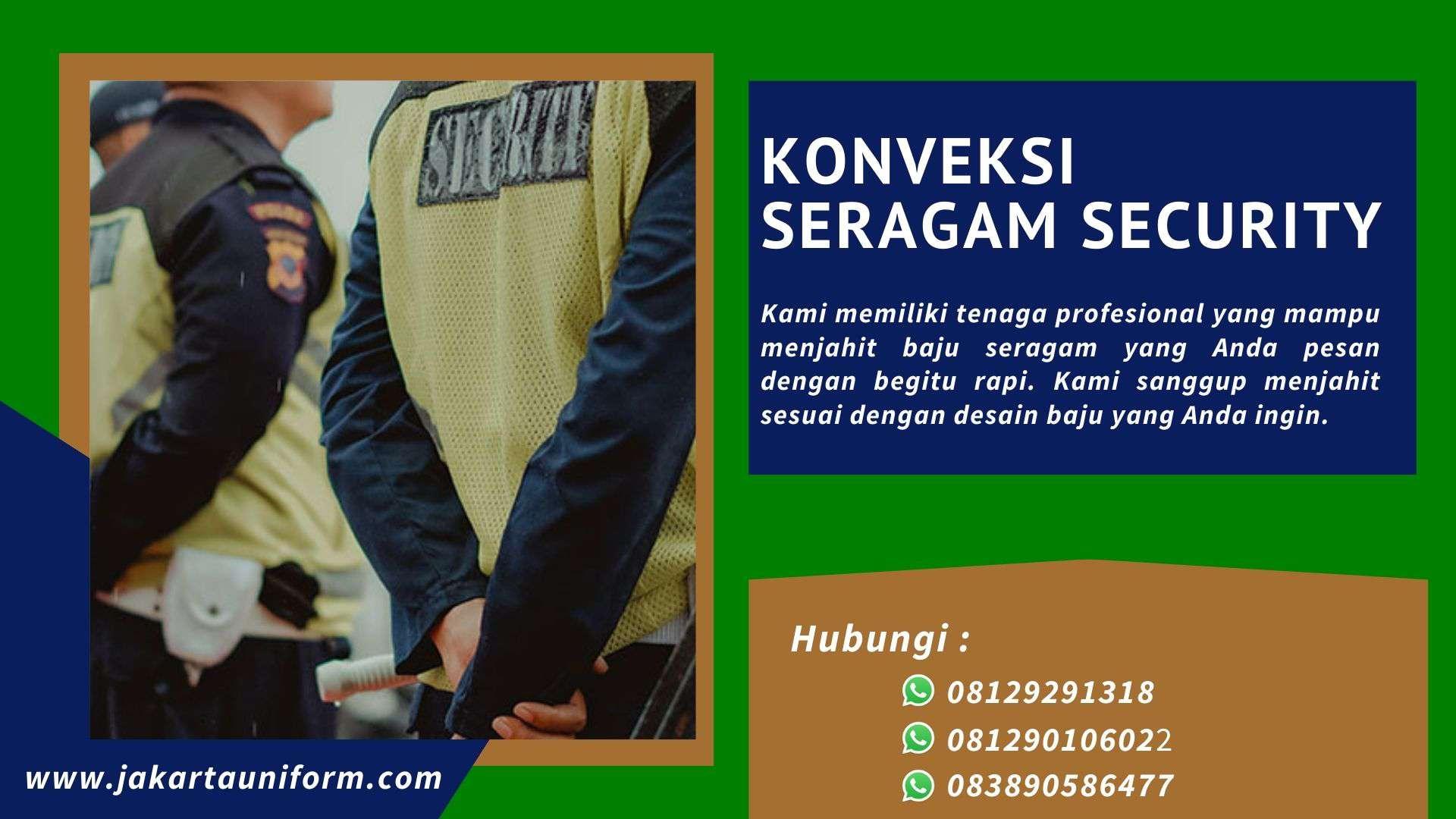 Jasa konveksi seragam security terbaik kami menawarkan solusi lengkap untuk kebutuhan seragam security Anda. Dengan pengalaman dan keahlian dalam bidang ini, kami siap memberikan seragam yang tangguh, fungsional, dan tahan lama. Dengan fokus pada detail dan kualitas material, kami memberikan seragam security yang nyaman dipakai sepanjang hari. Percayakan kepada kami untuk mendapatkan seragam security terbaik yang tidak hanya memenuhi standar keselamatan, tetapi juga tampil menarik dan profesional.
