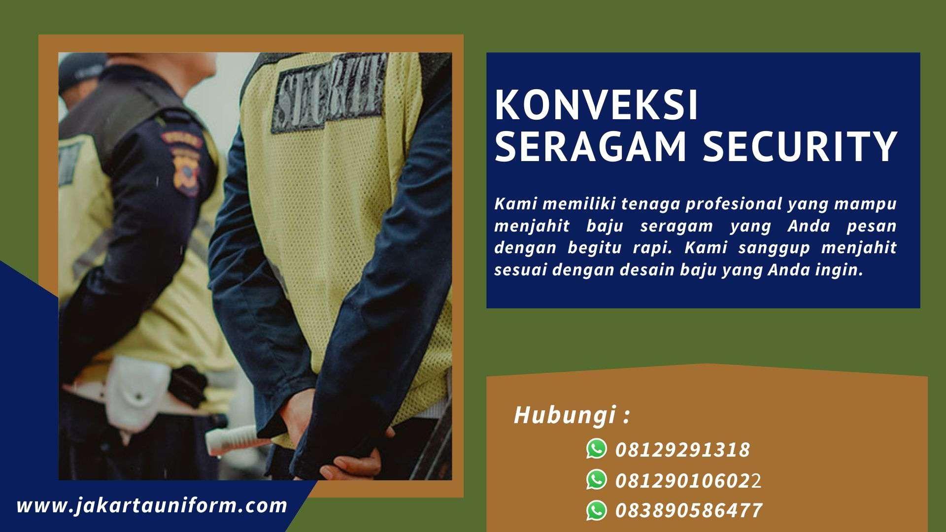 Jasa konveksi seragam security terbaik kami menawarkan solusi lengkap untuk kebutuhan seragam security Anda. Dengan pengalaman dan keahlian dalam bidang ini, kami siap memberikan seragam yang tangguh, fungsional, dan tahan lama. Dengan fokus pada detail dan kualitas material, kami memberikan seragam security yang nyaman dipakai sepanjang hari. Percayakan kepada kami untuk mendapatkan seragam security terbaik yang tidak hanya memenuhi standar keselamatan, tetapi juga tampil menarik dan profesional.