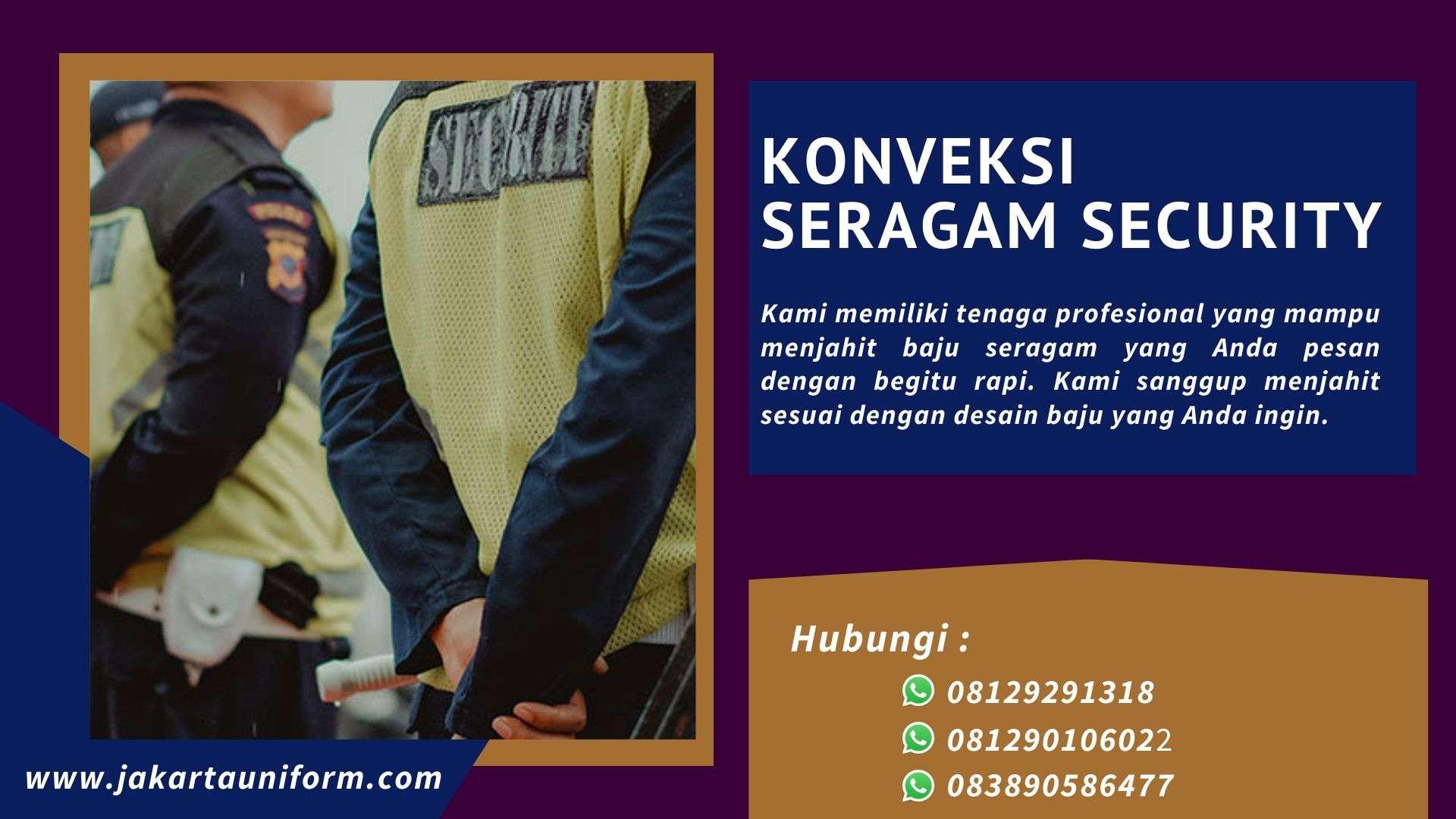 Jasa konveksi seragam security terbaik kami menawarkan solusi lengkap untuk kebutuhan seragam security Anda. Dengan pengalaman dan keahlian dalam bidang ini, kami siap memberikan seragam yang tangguh, fungsional, dan tahan lama. Dengan fokus pada detail dan kualitas material, kami memberikan seragam security yang nyaman dipakai sepanjang hari. Percayakan kepada kami untuk mendapatkan seragam security terbaik yang tidak hanya memenuhi standar keselamatan, tetapi juga tampil menarik dan profesional.