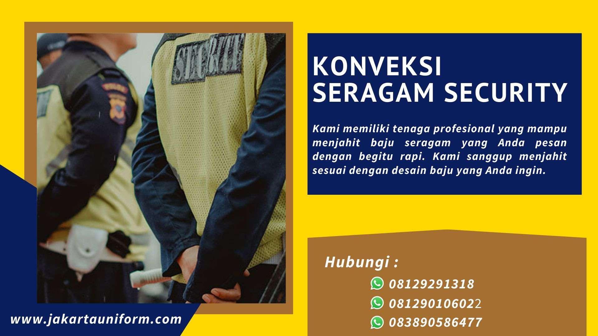 Jasa konveksi seragam security terbaik kami menawarkan solusi lengkap untuk kebutuhan seragam security Anda. Dengan pengalaman dan keahlian dalam bidang ini, kami siap memberikan seragam yang tangguh, fungsional, dan tahan lama. Dengan fokus pada detail dan kualitas material, kami memberikan seragam security yang nyaman dipakai sepanjang hari. Percayakan kepada kami untuk mendapatkan seragam security terbaik yang tidak hanya memenuhi standar keselamatan, tetapi juga tampil menarik dan profesional.