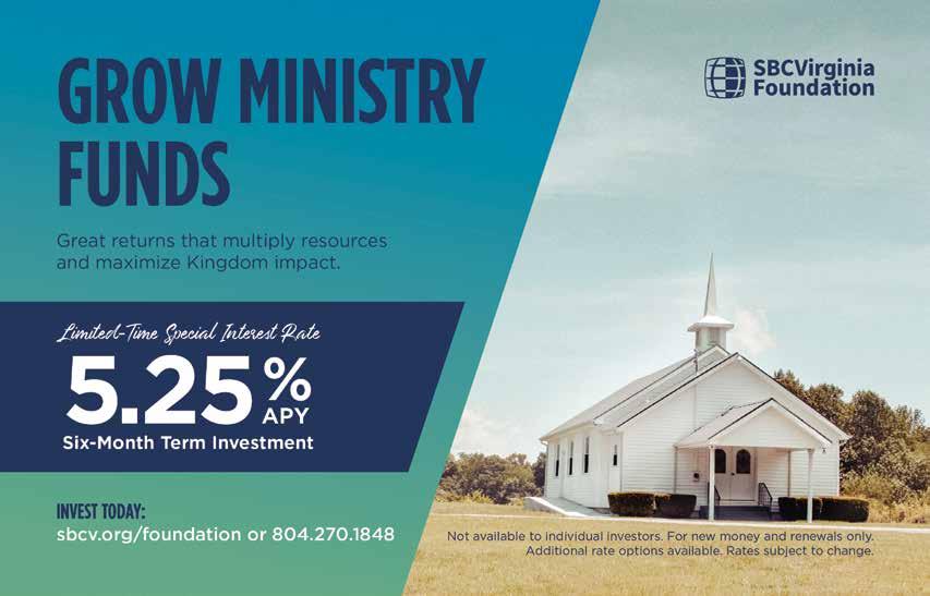 Advertising is accepted on an individual basis and does not imply editorial endorsement. For more information, contact Brandon Pickett, bpickett@sbcv.org or 804-270-1848.