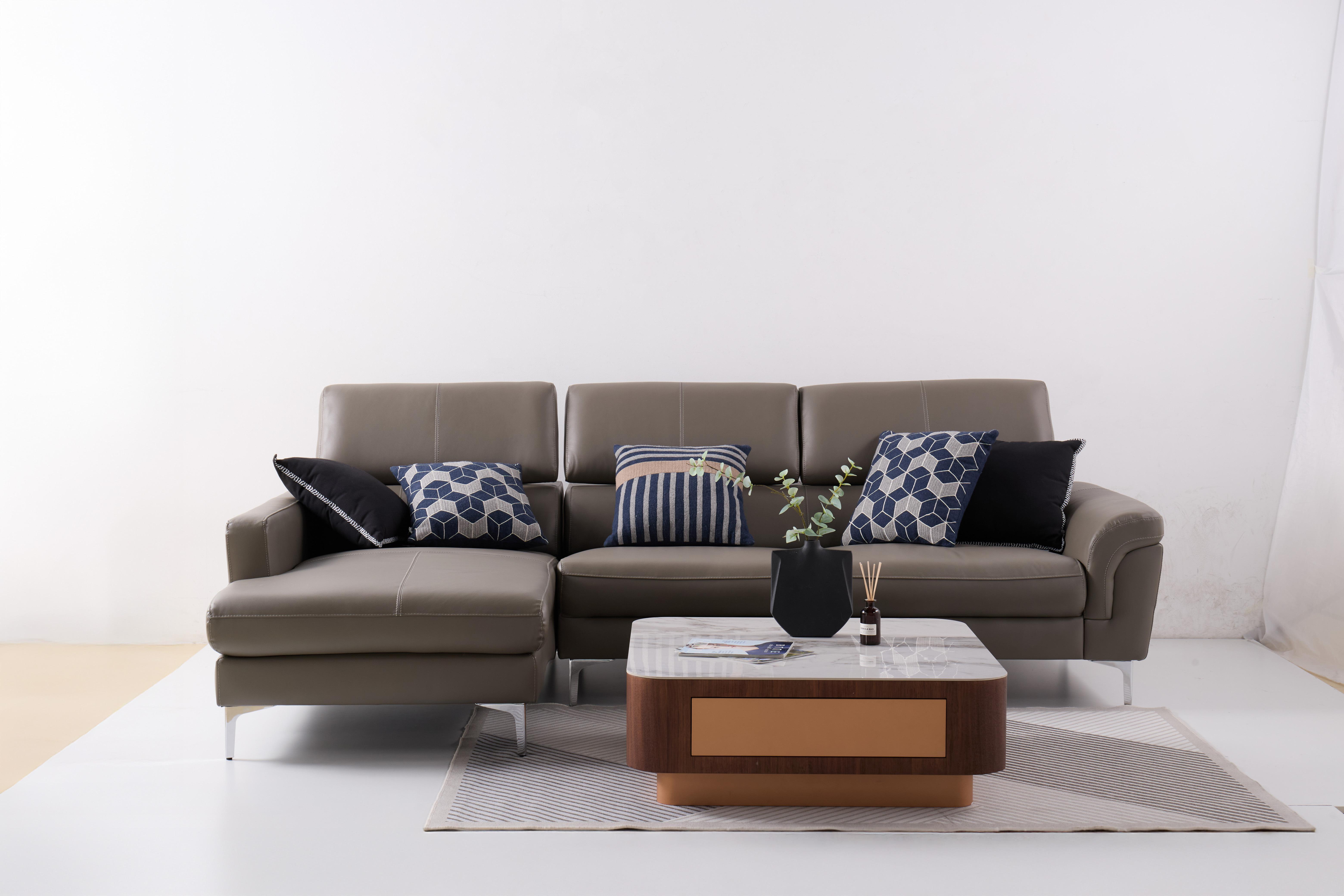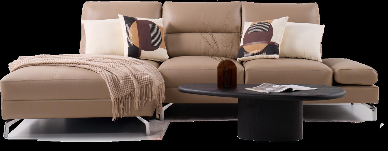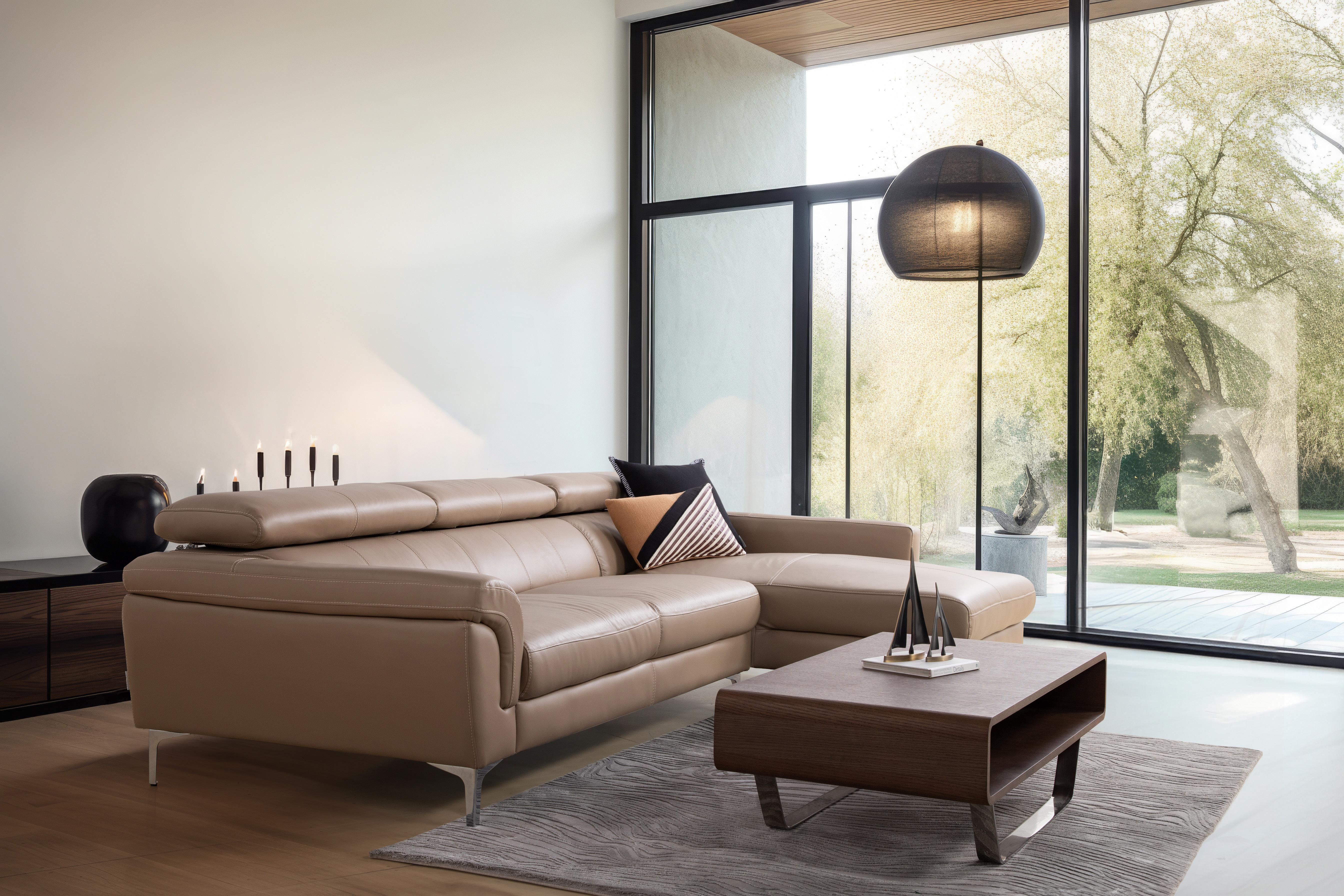 "GENUINE LEATHER SOFAS OFTEN CONVEY A PREMIUM AND SOPHISTICATED LOOK, ELEVATING THE ROOM'S AMBIANCE WITH TIMELESS STYLE AND ELEGANCE."
