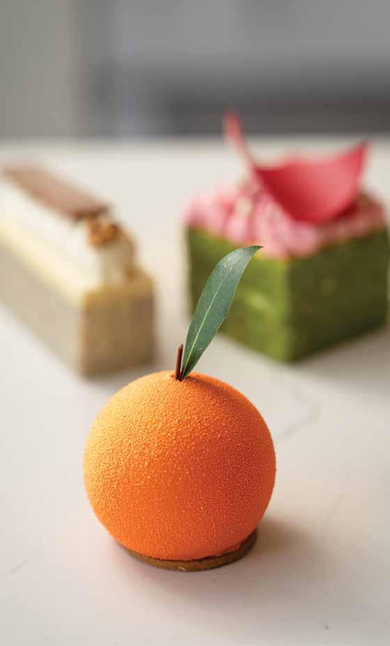 The Orange from Alessia Patisserie and Cafe features orange confit, orange blossom mousse, honey and orange madeleine cake, citrus sable and a white chocolate exterior crunch